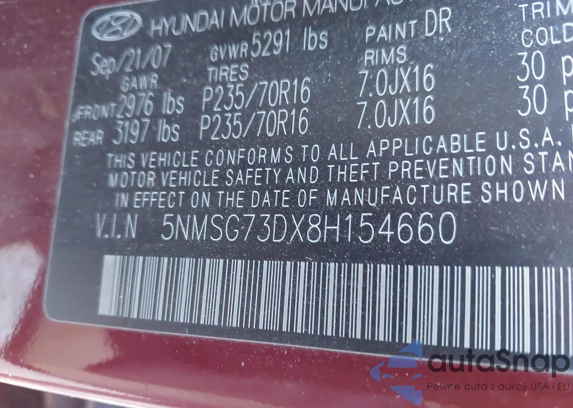 • VIN 5NMSG73DX8H154660