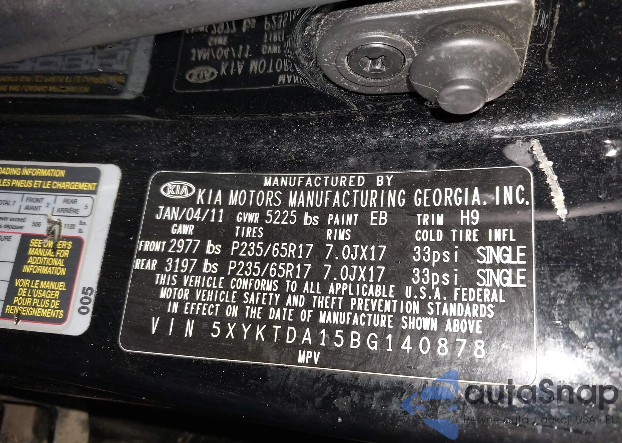 • VIN 5XYKTDA15BG140878
