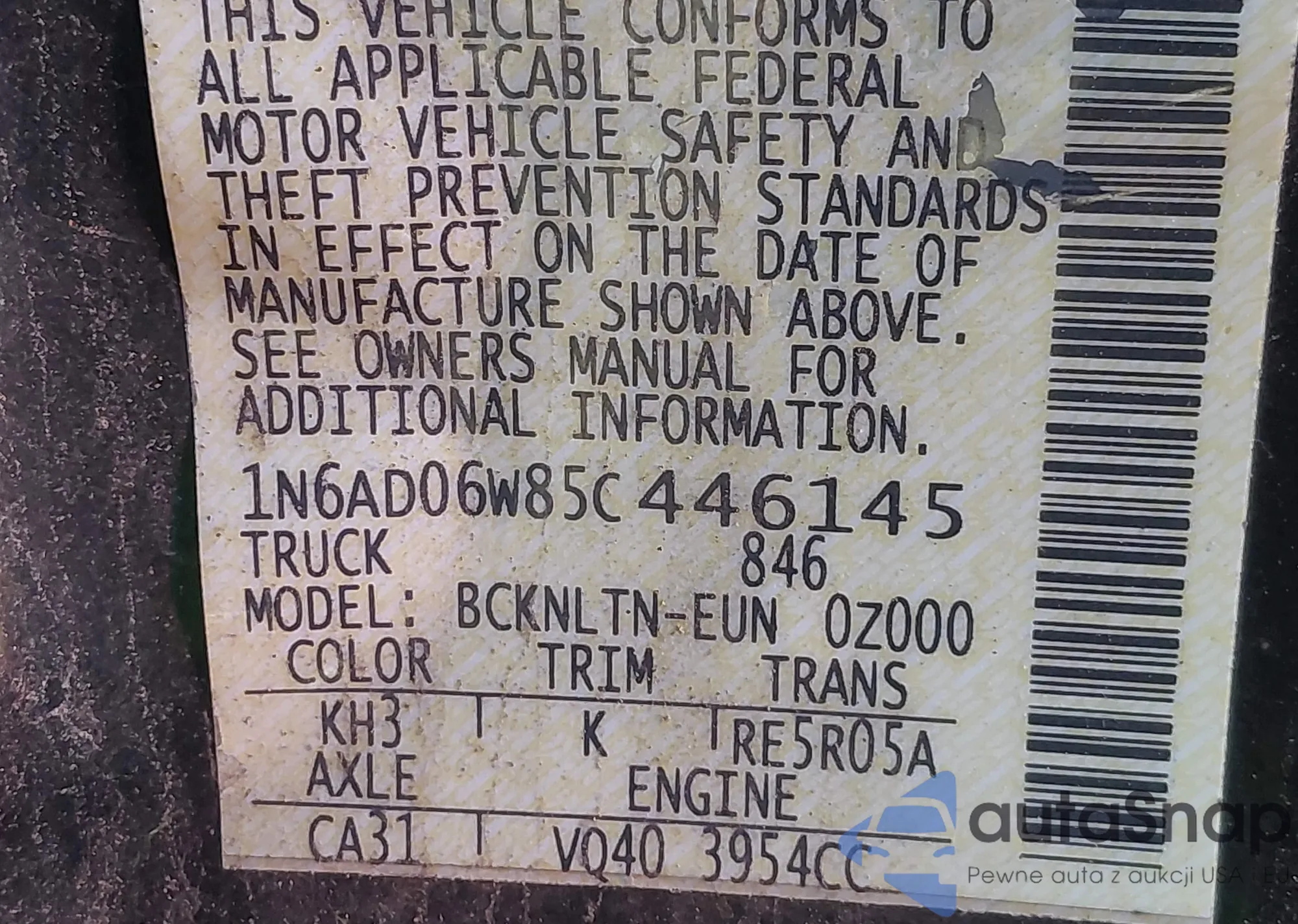 • VIN WAUBFAFL5CN019565