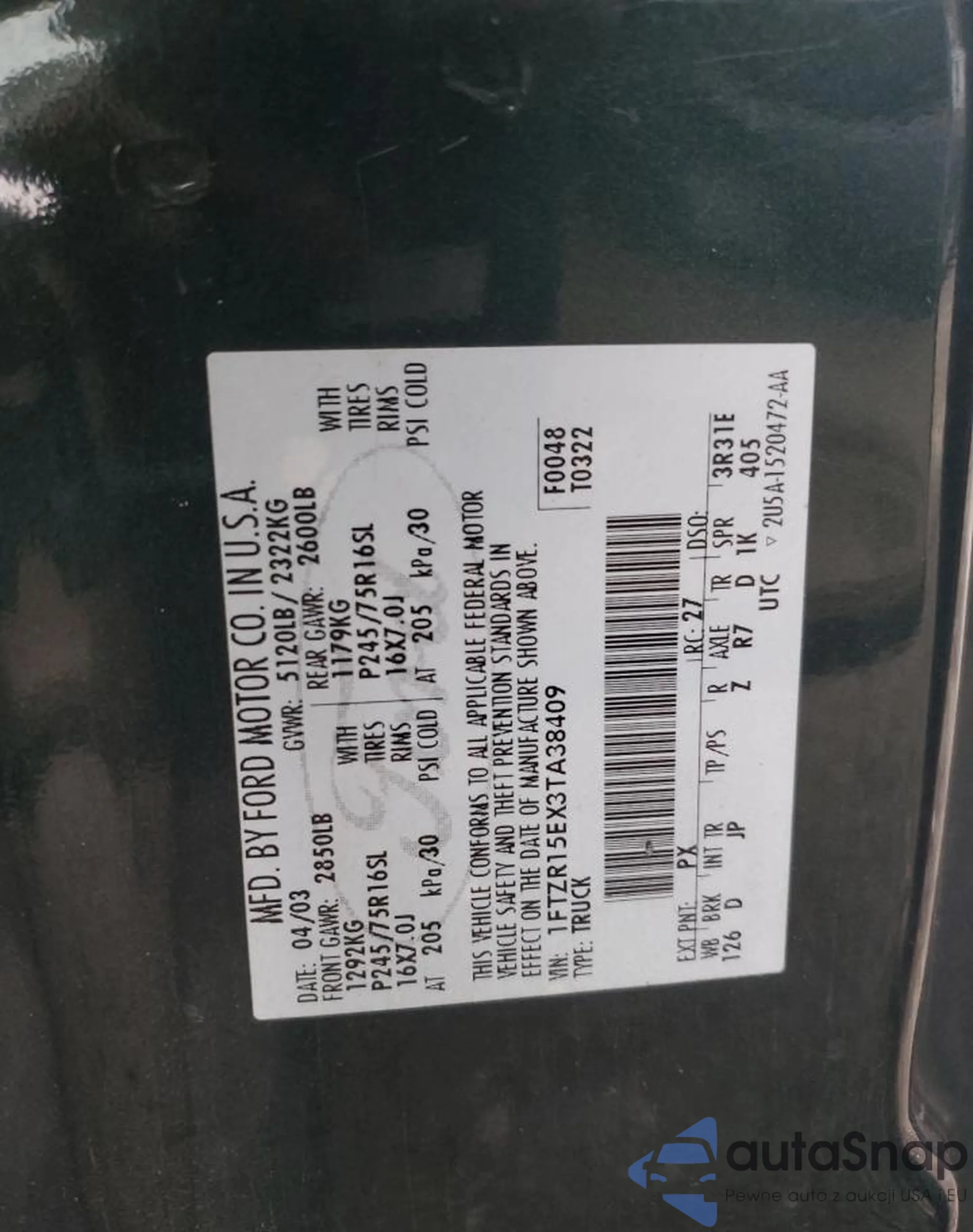 • VIN 1FTZR15EX3TA38409