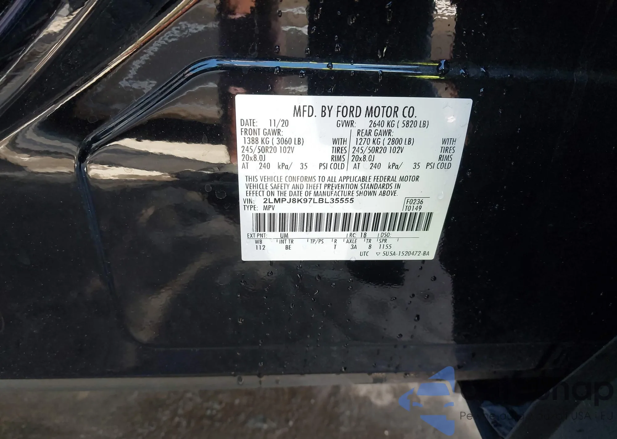 LOT: 43447320 VIN: 2LMPJ8K97LBL35555