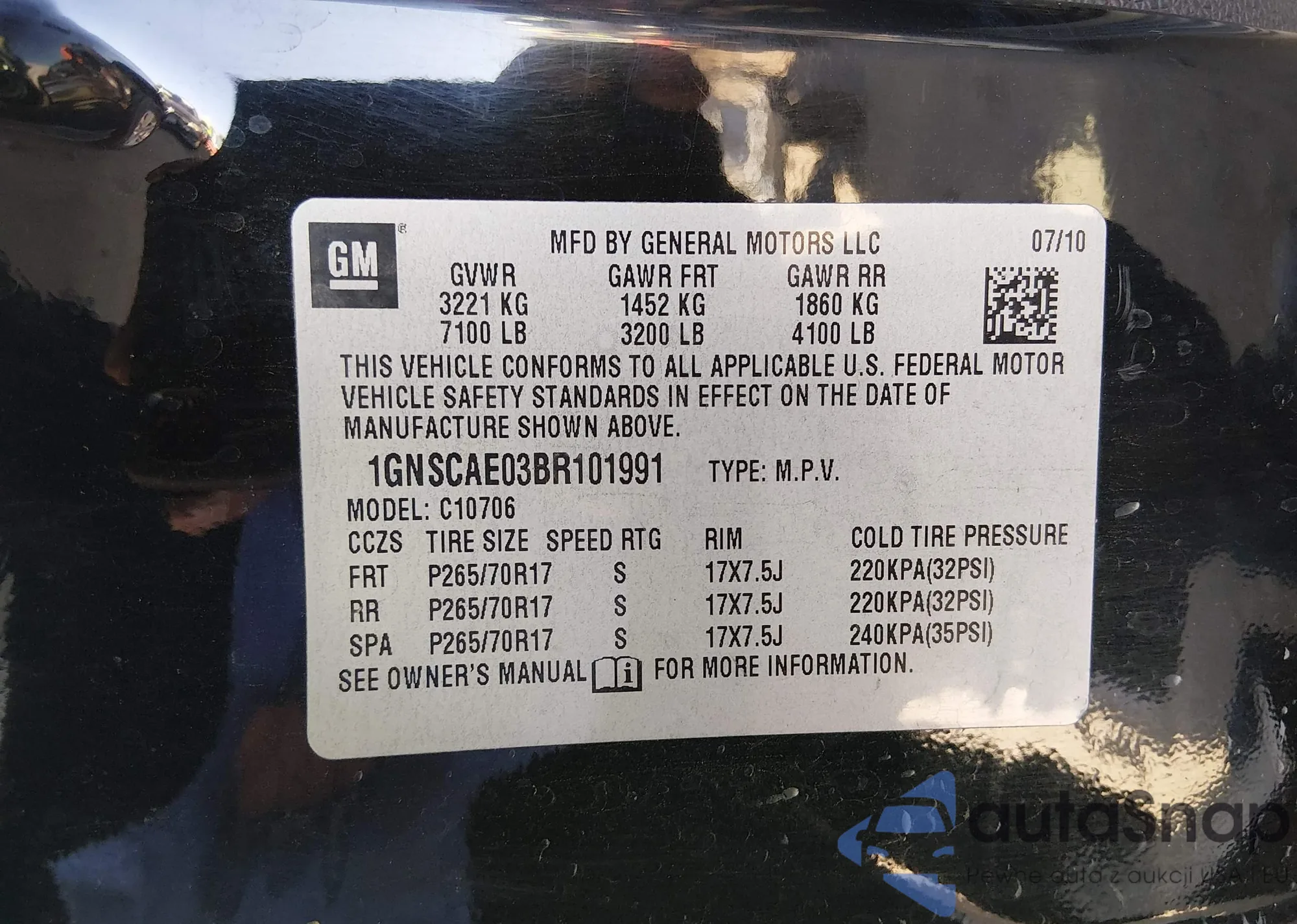 LOT: 43763247 VIN: 1GNSCJKC7FR230787