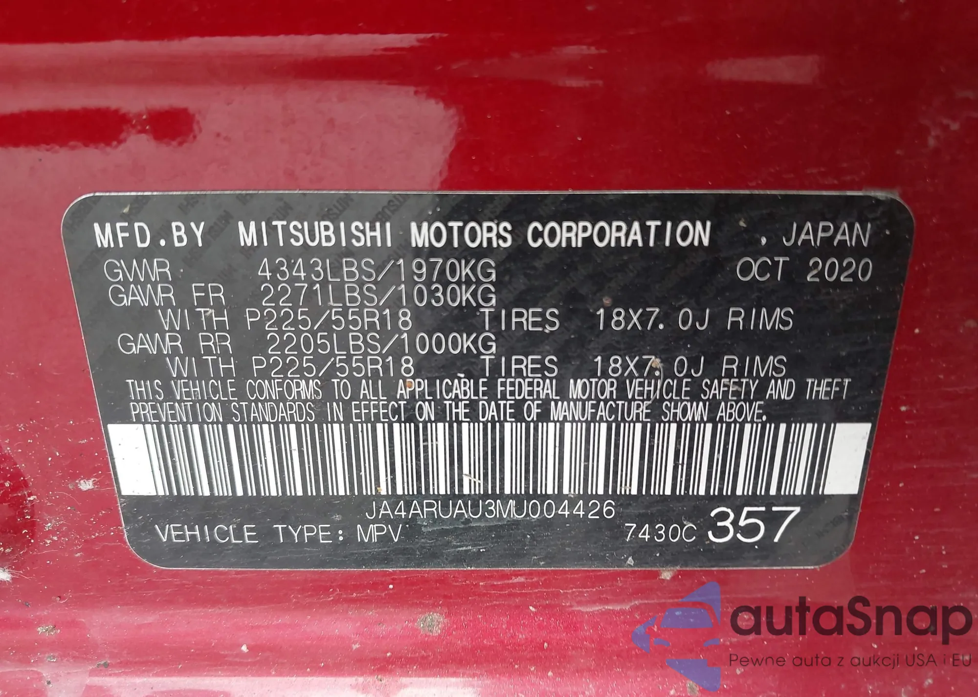LOT: 43448161 VIN: 5YJYGDEE9MF263895