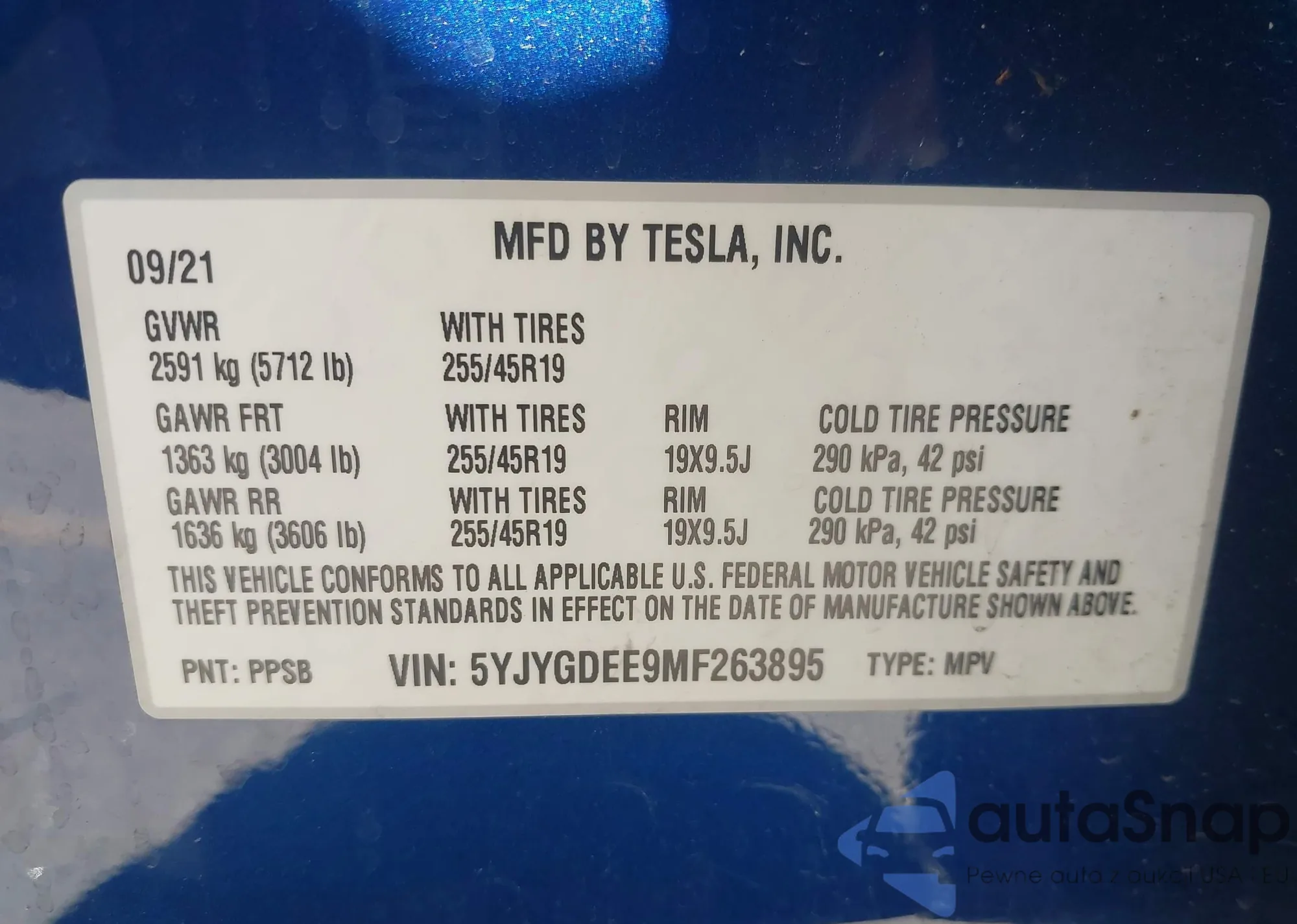 • VIN 5YJYGDEE9MF263895