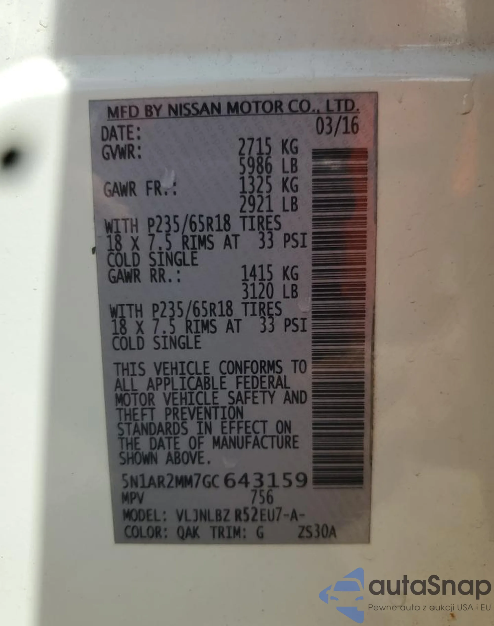 LOT: 71914465 VIN: 5N1BT3AB5NC686880