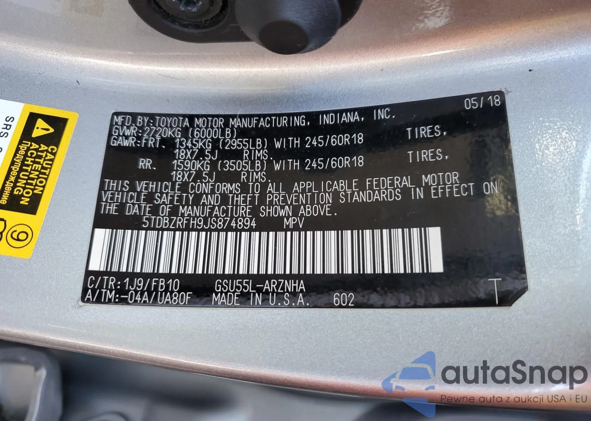 LOT: 86633135 VIN: WA1FVBF1XPD004786