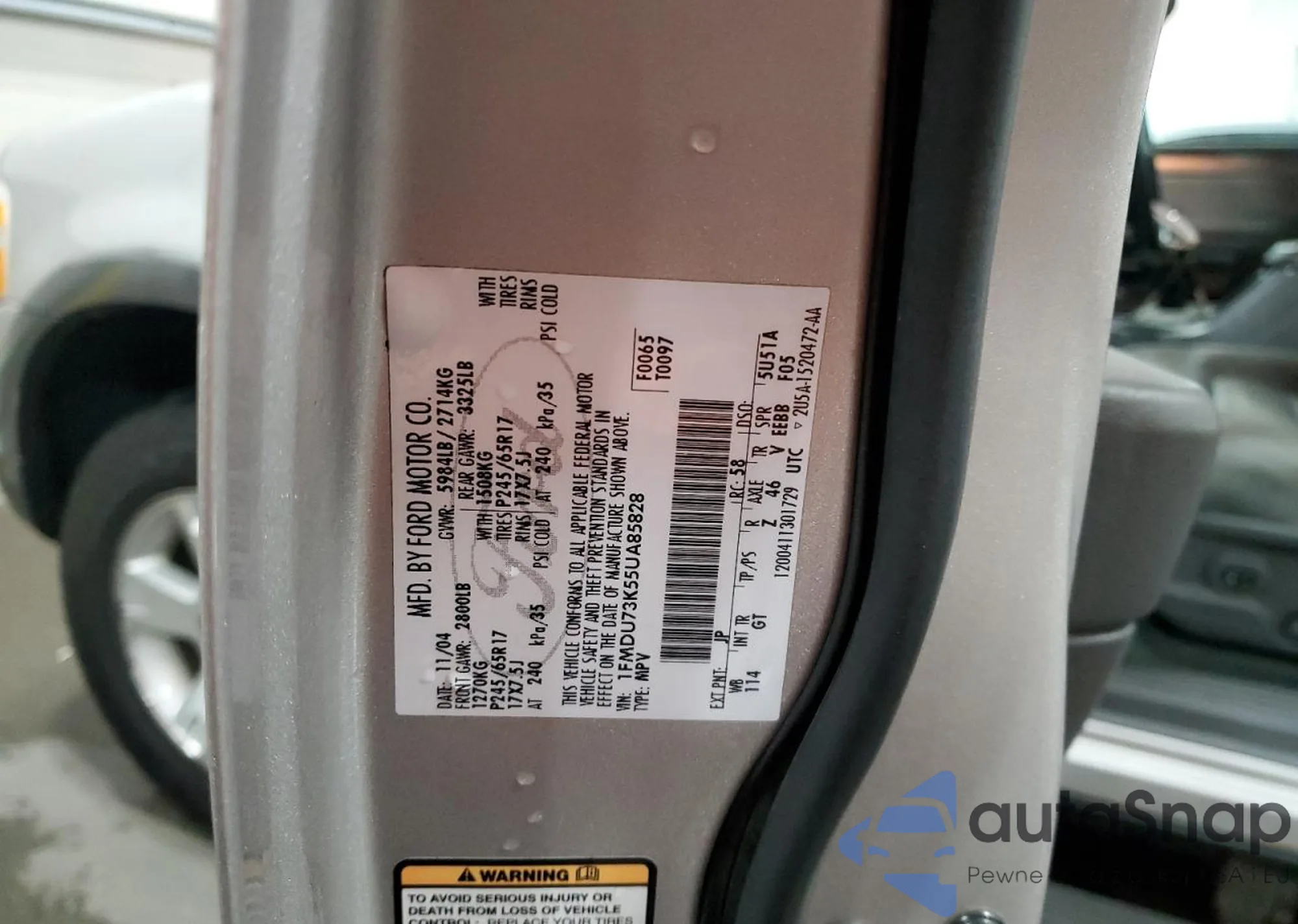 • VIN 1FMDU73K55UA85828