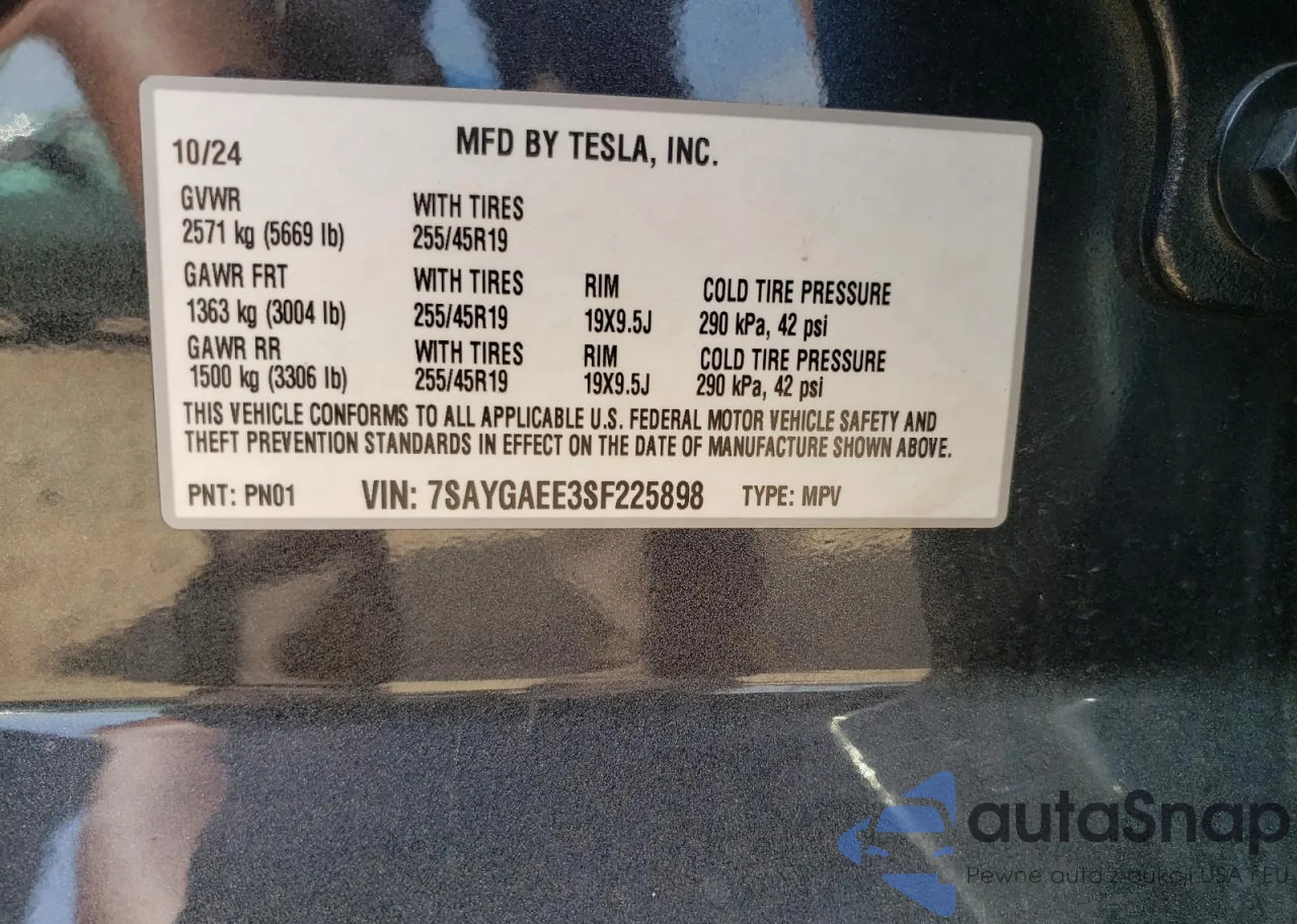 • VIN 7SAYGAEE3SF225898