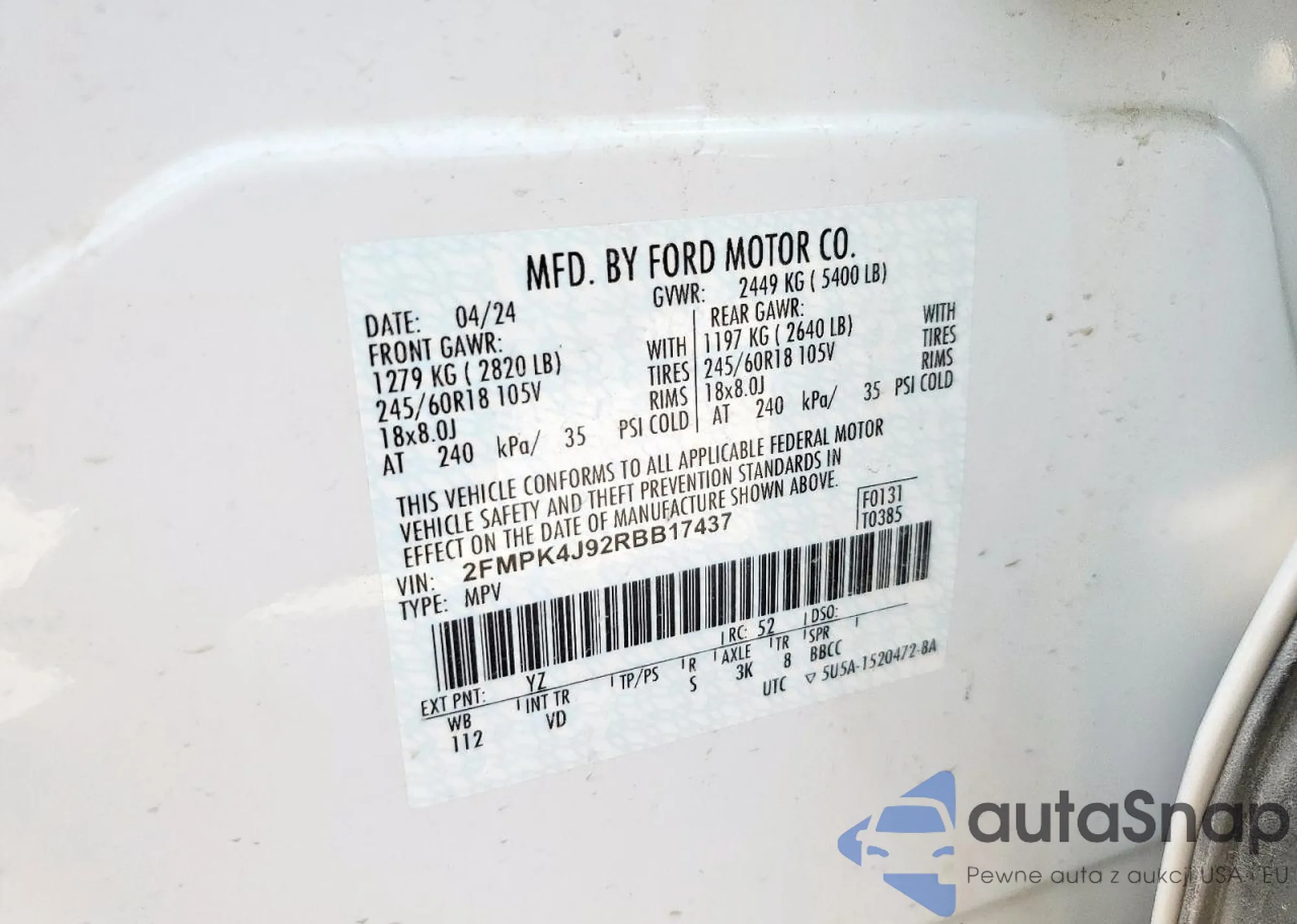 • VIN 2FMPK4J92RBB17437