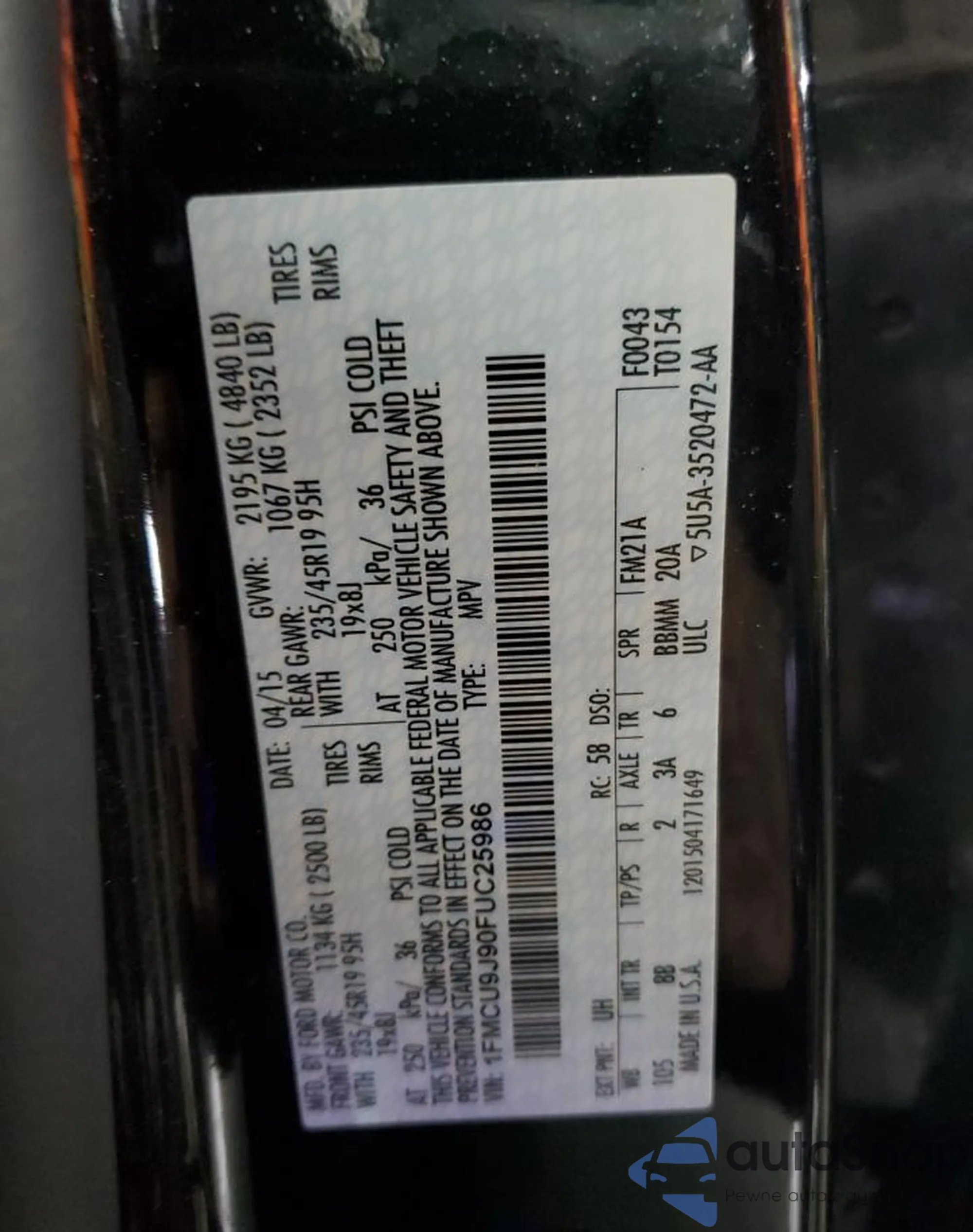 • VIN 1FMCU9J90FUC25986