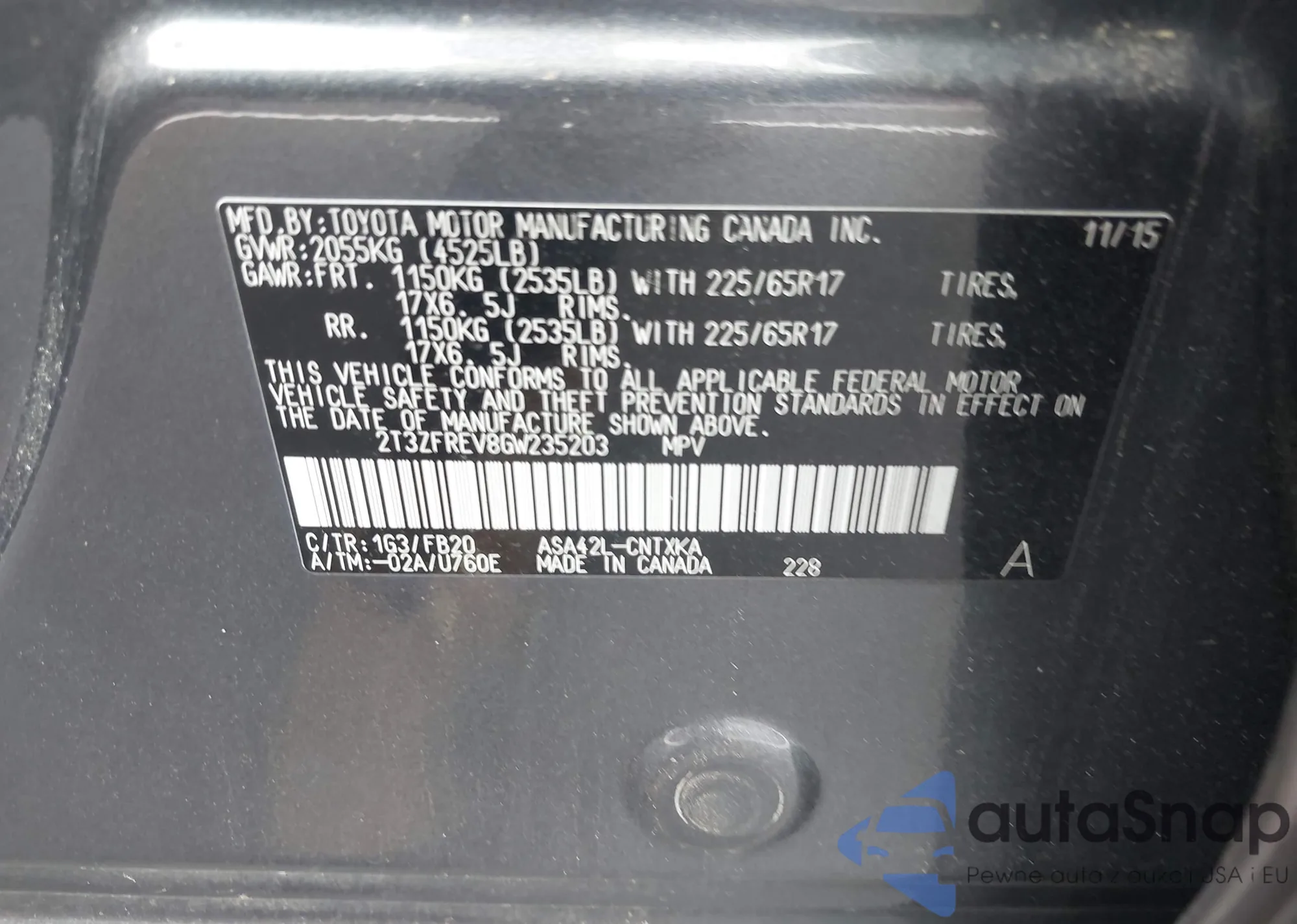 • VIN 2T3ZFREV8GW235203