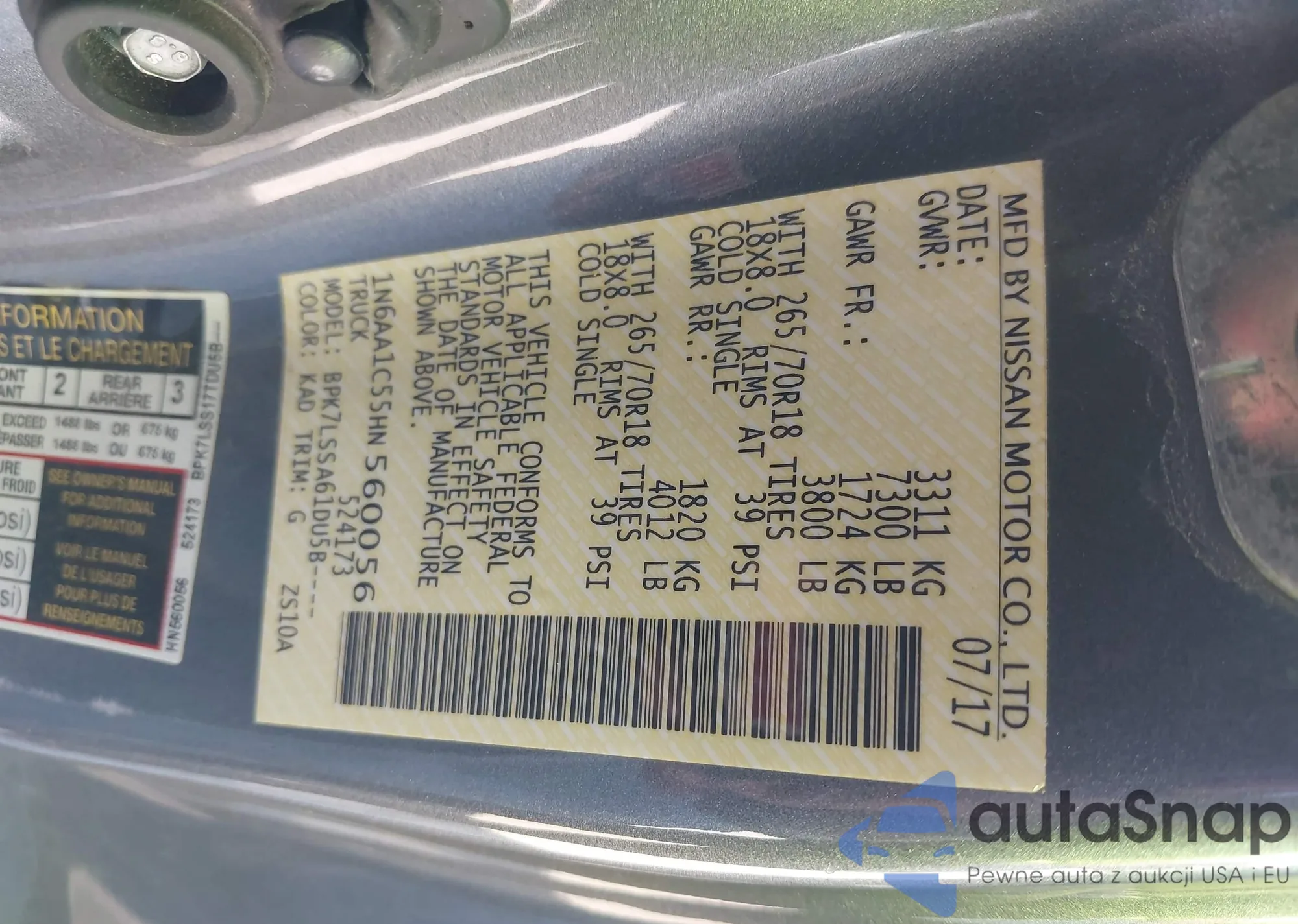 LOT: 43277723 VIN: 55SWF4JB8HU218327