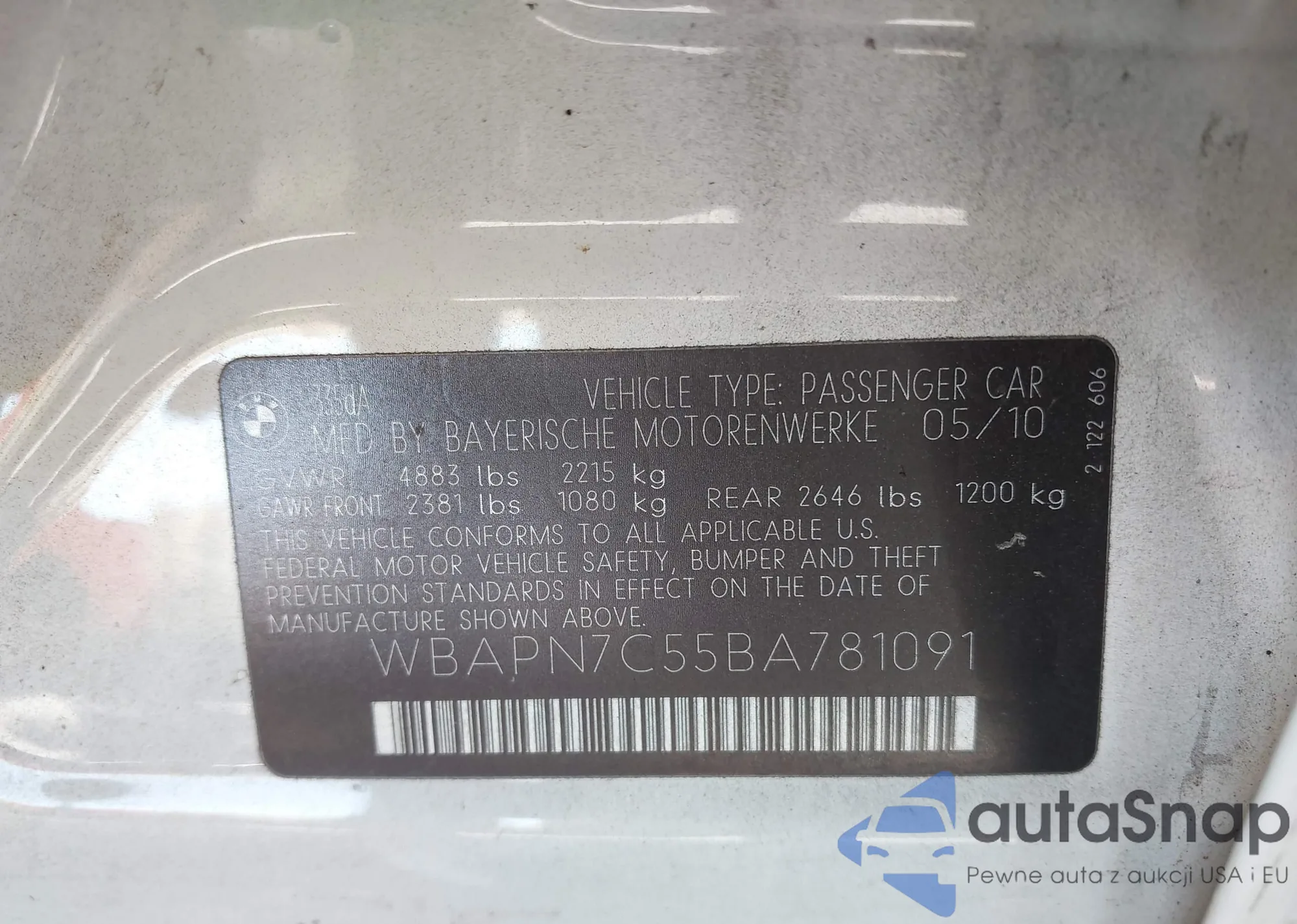 • VIN WBAPN7C55BA781091
