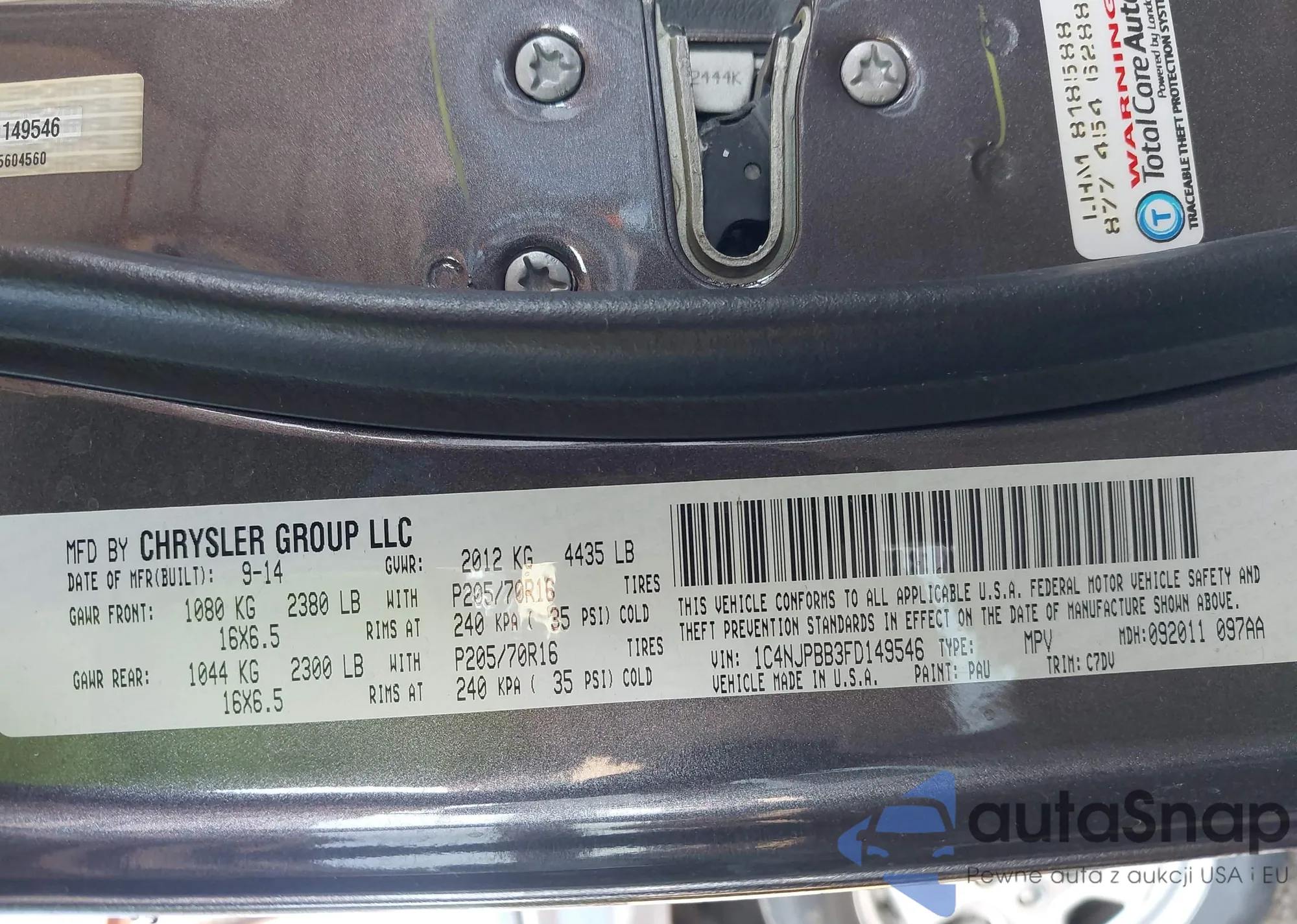 • VIN 1C4NJPBB3FD149546