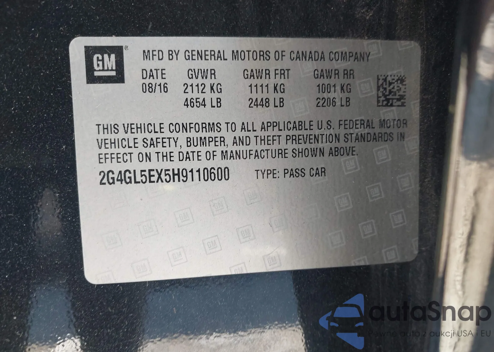 • VIN 2G4GL5EX5H9110600