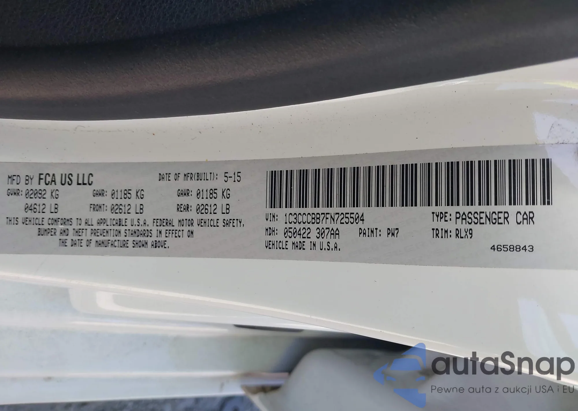 LOT: 43670833 VIN: 1C3CCCBB7FN725504