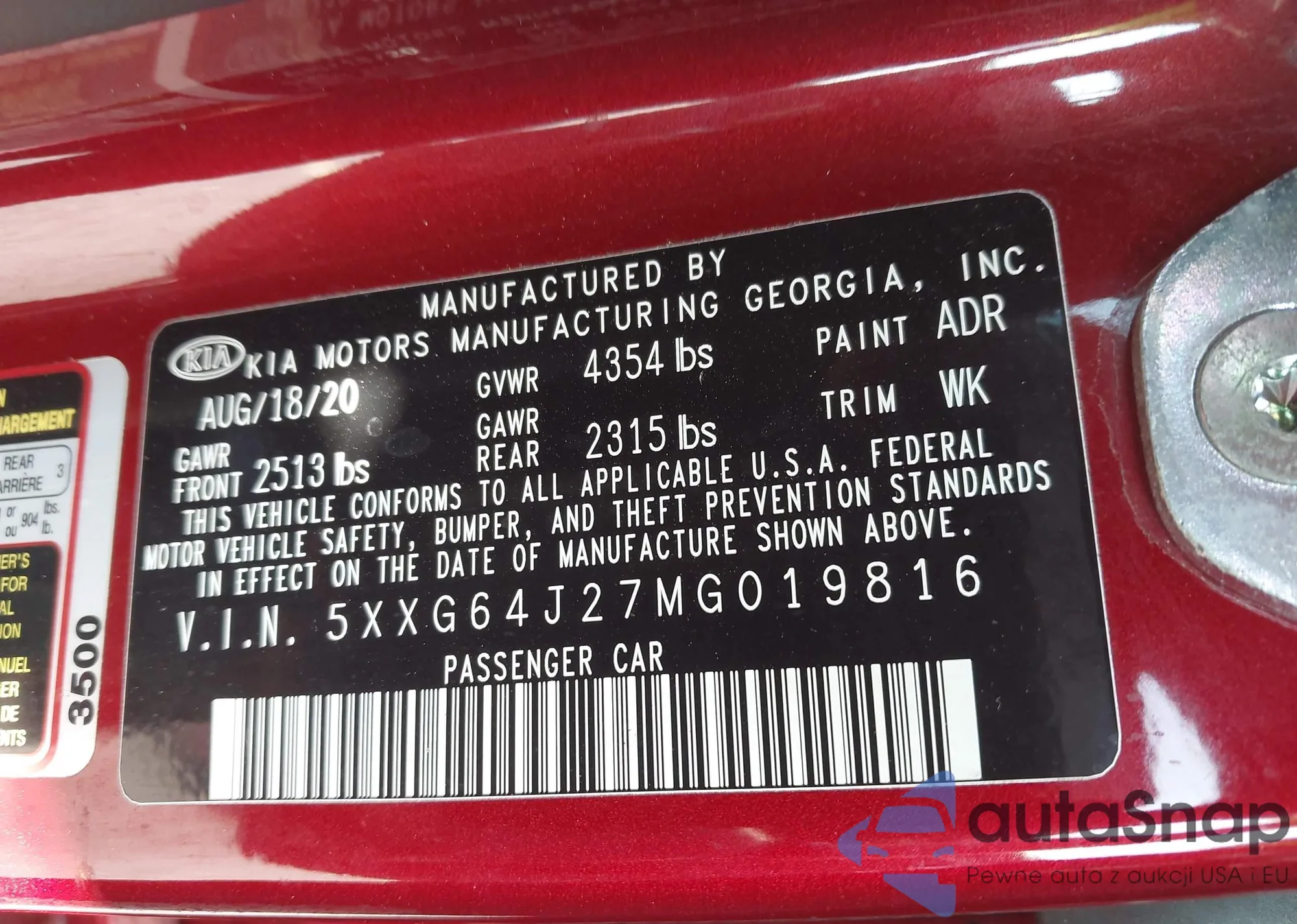 • VIN 5XXG64J27MG019816