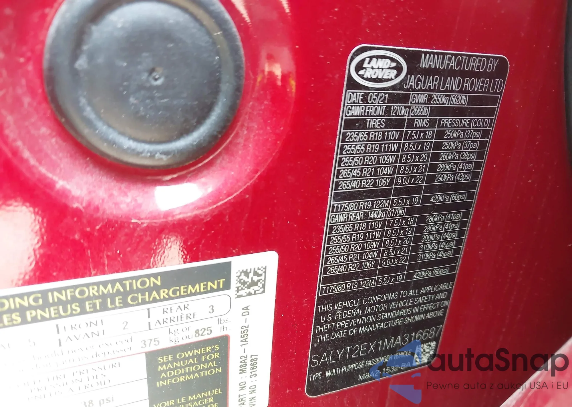LOT: 43164937 VIN: SALYT2EX1MA316687