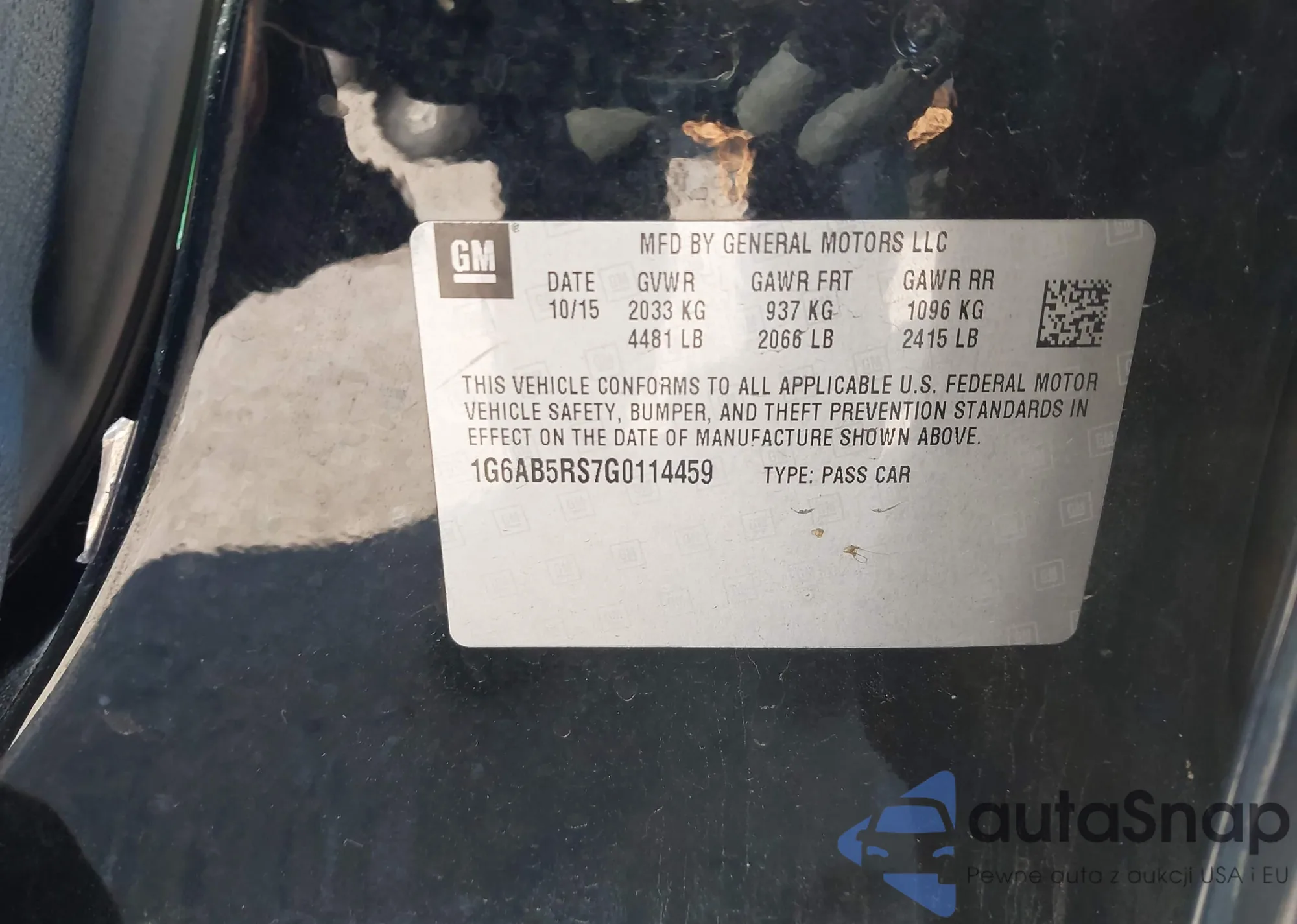 • VIN 1G6AB5RS7G0114459