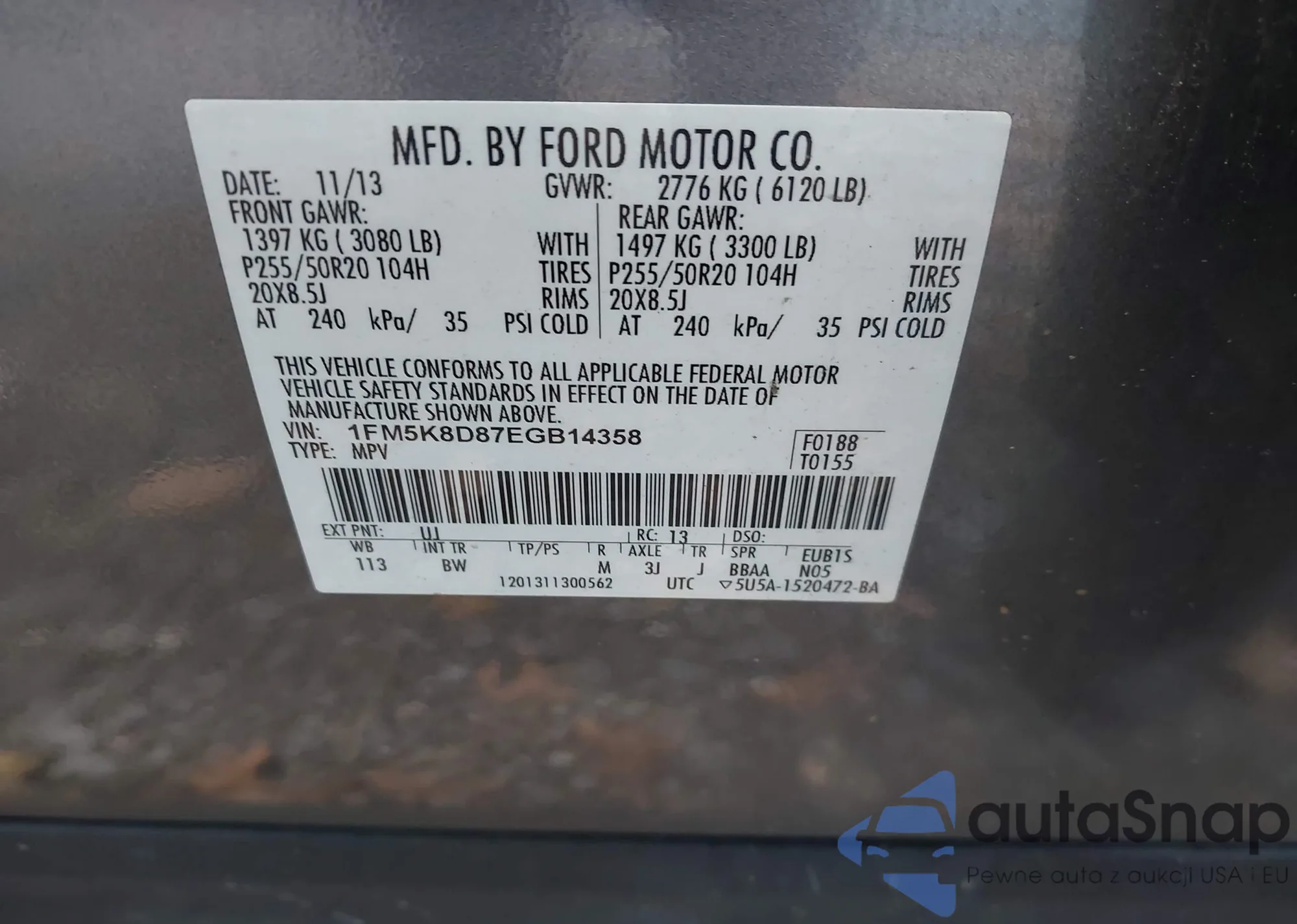 • VIN 1FM5K8D87EGB14358