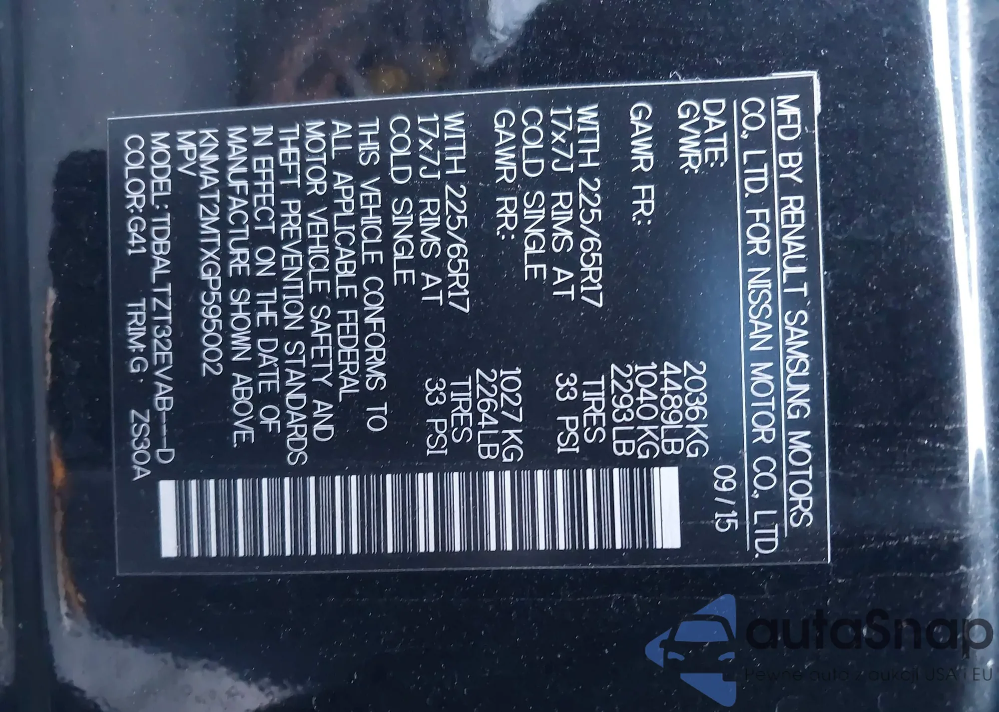 • VIN KNMAT2MTXGP595002