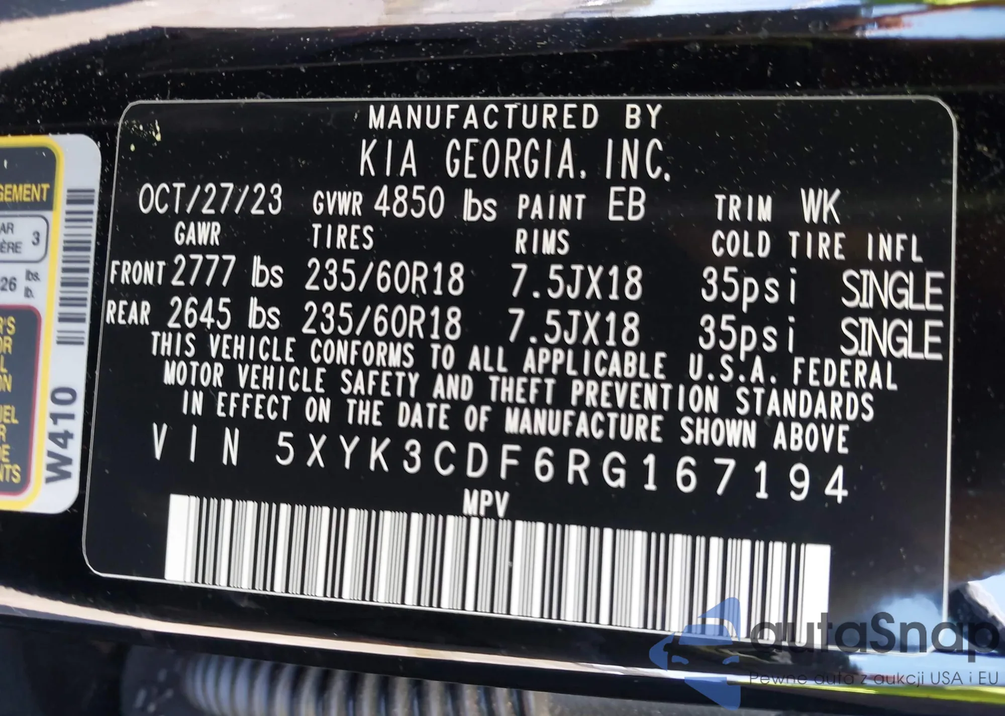• VIN 5XYK3CDF6RG167194