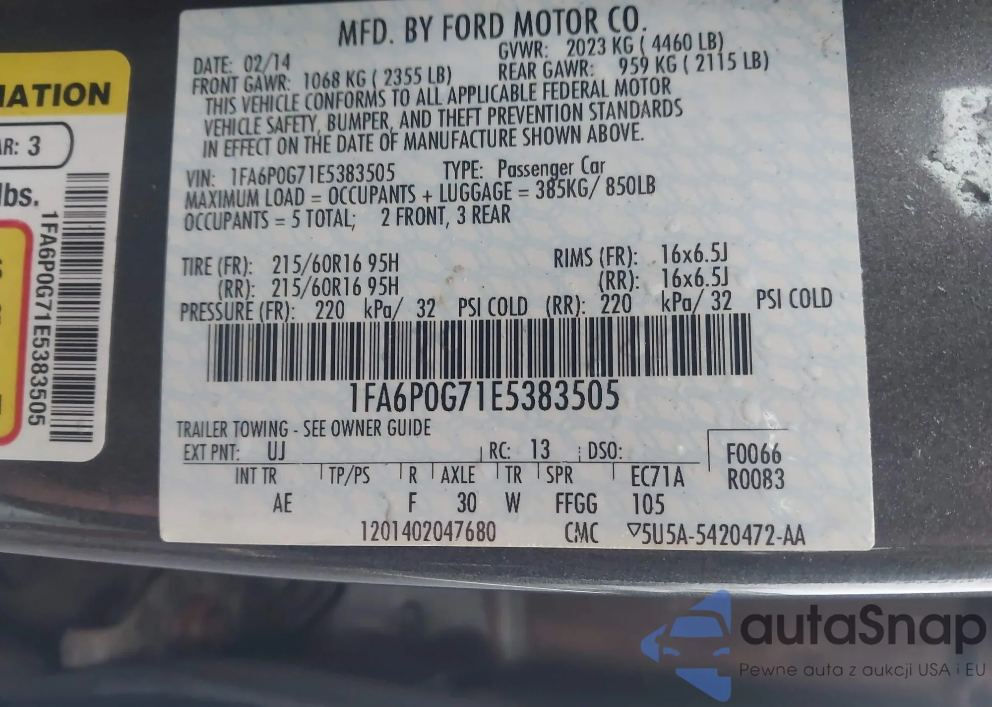 LOT: 43321479 VIN: 1FA6P0G71E5383505
