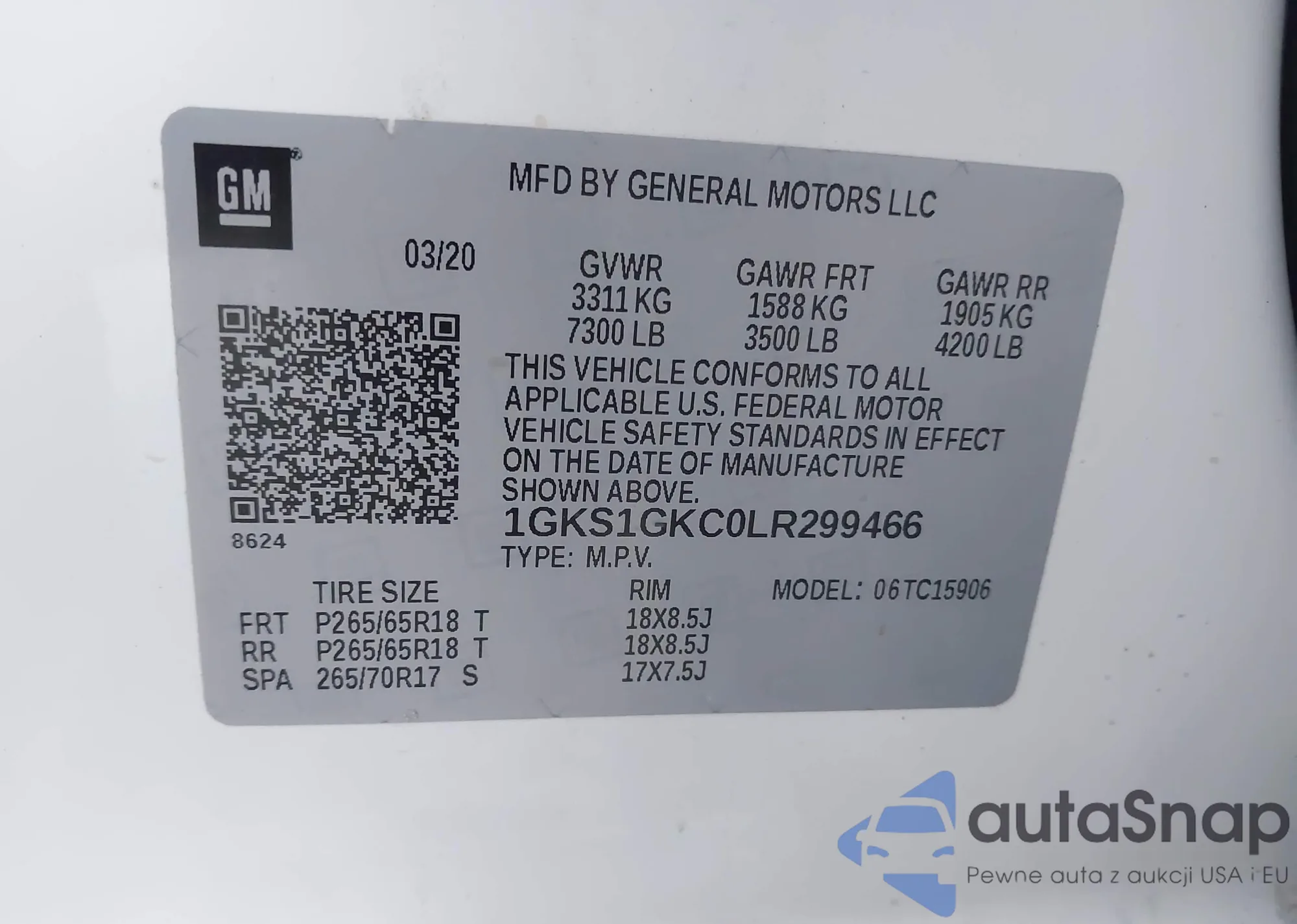 LOT: 43492124 VIN: 5UXTY3C09L9B64044
