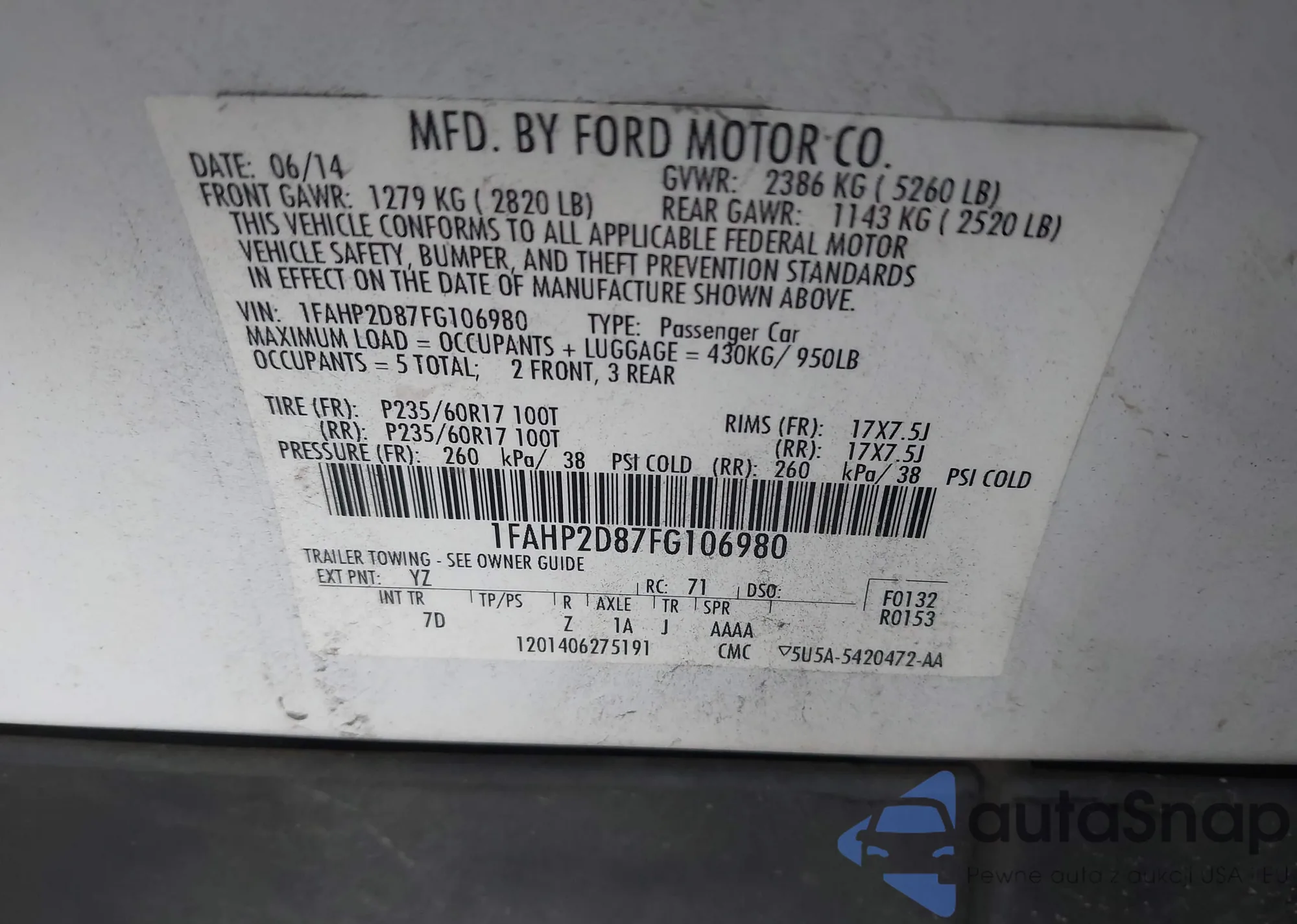 • VIN 1FAHP2D87FG106980