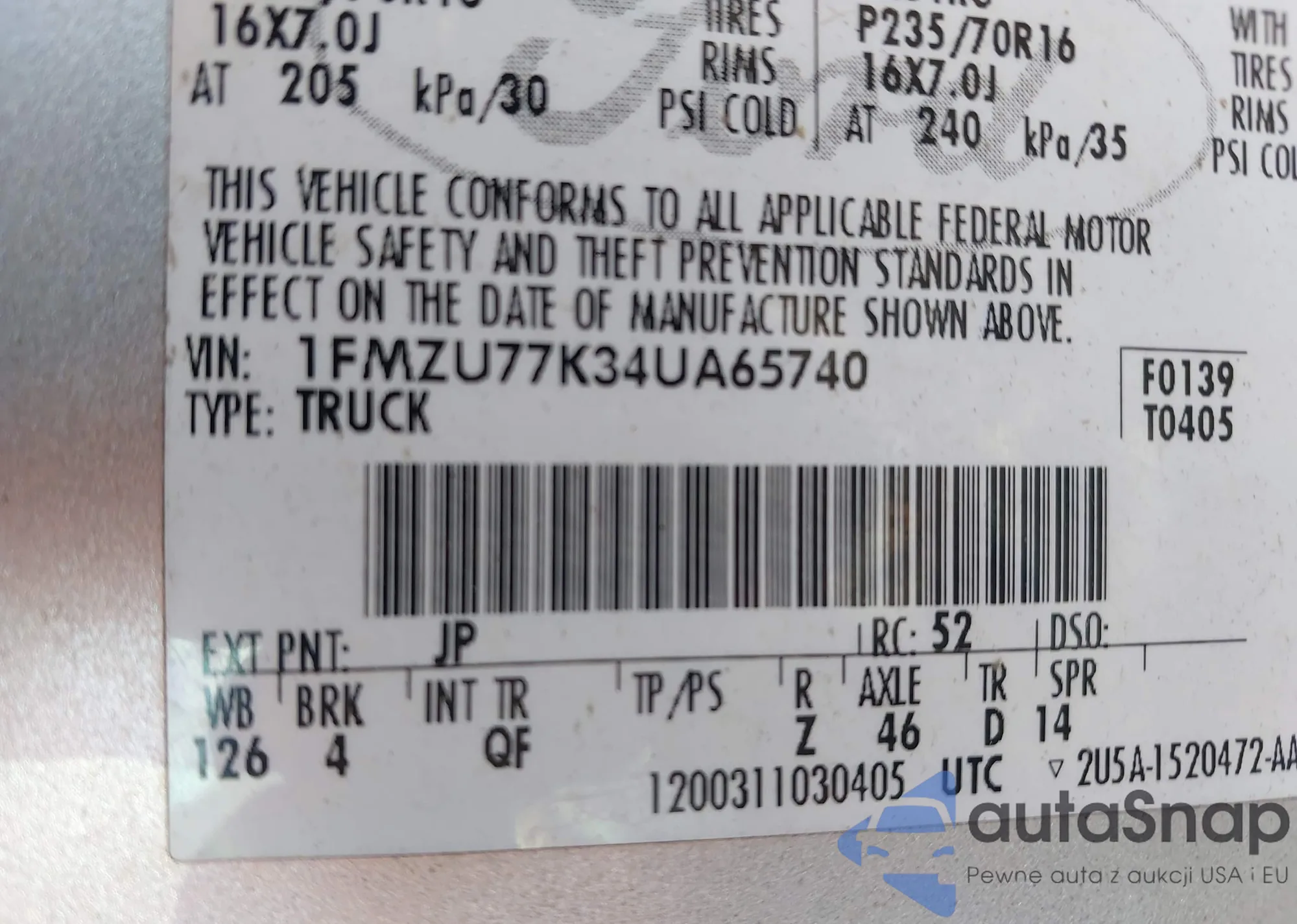 • VIN 1FMZU77K34UA65740