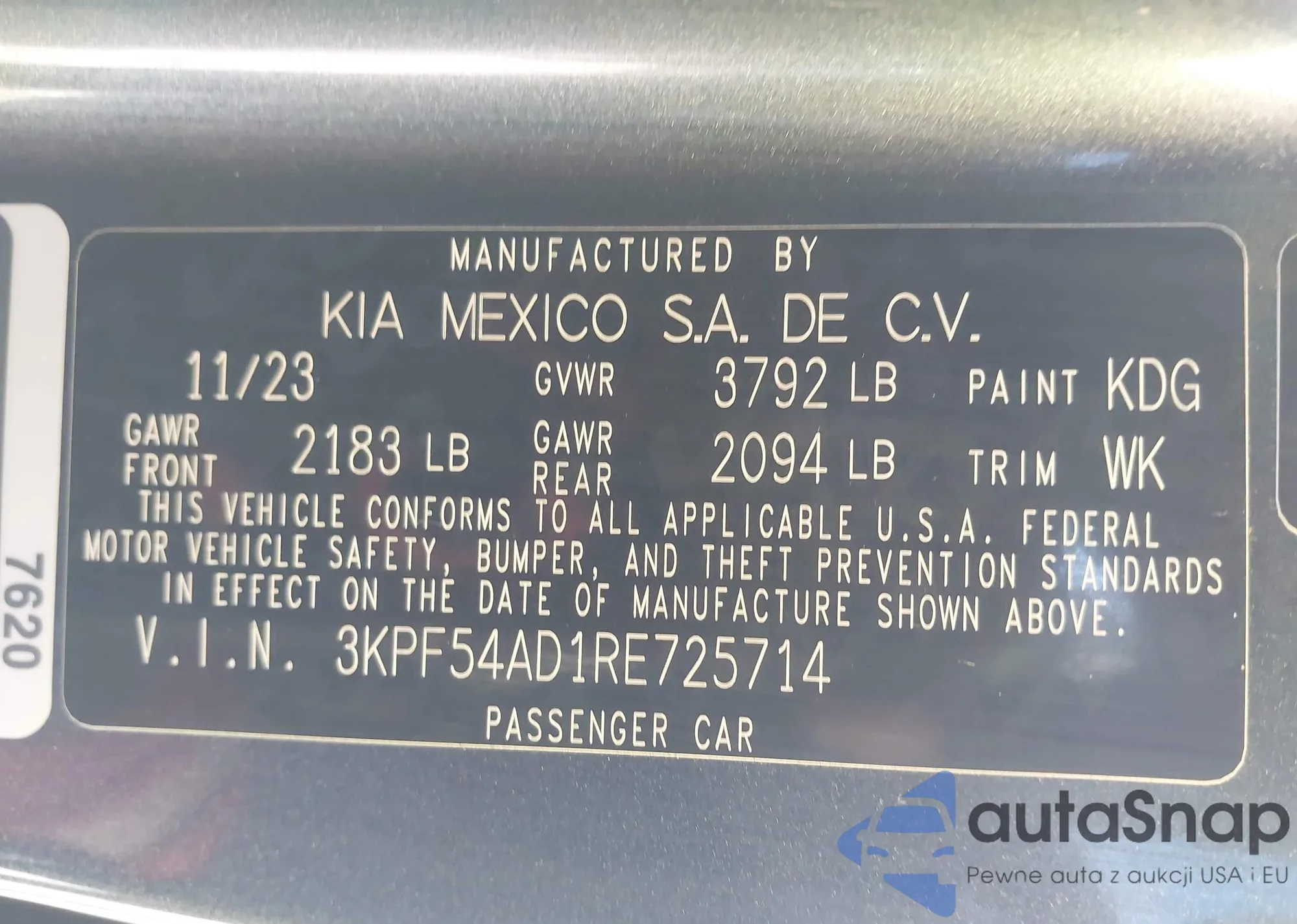 • VIN 3KPF54AD1RE725714