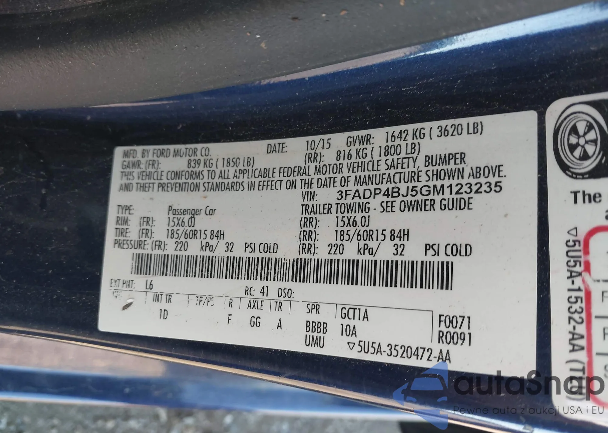 • VIN 3FADP4BJ5GM123235