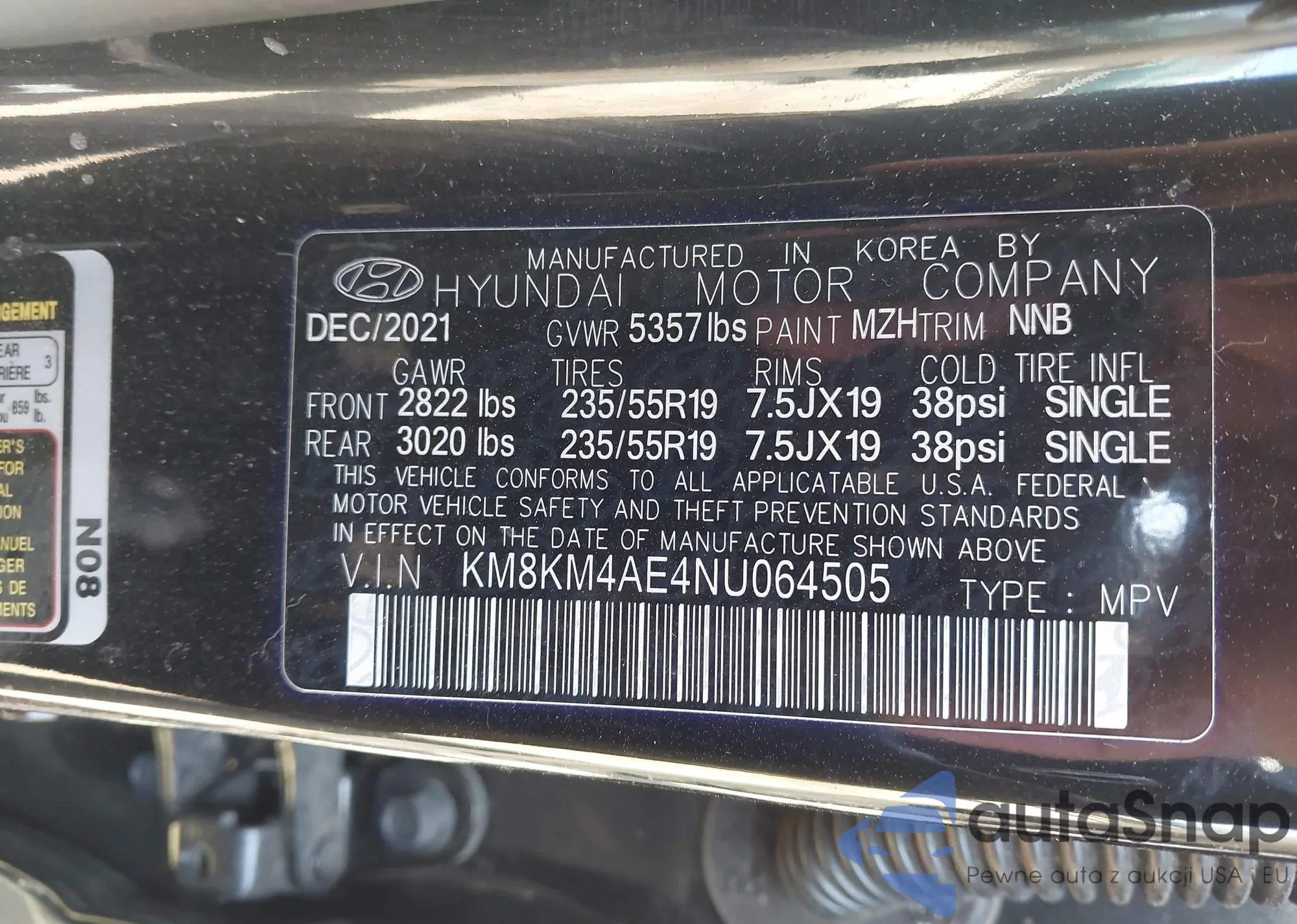 • VIN KM8KM4AE4NU064505
