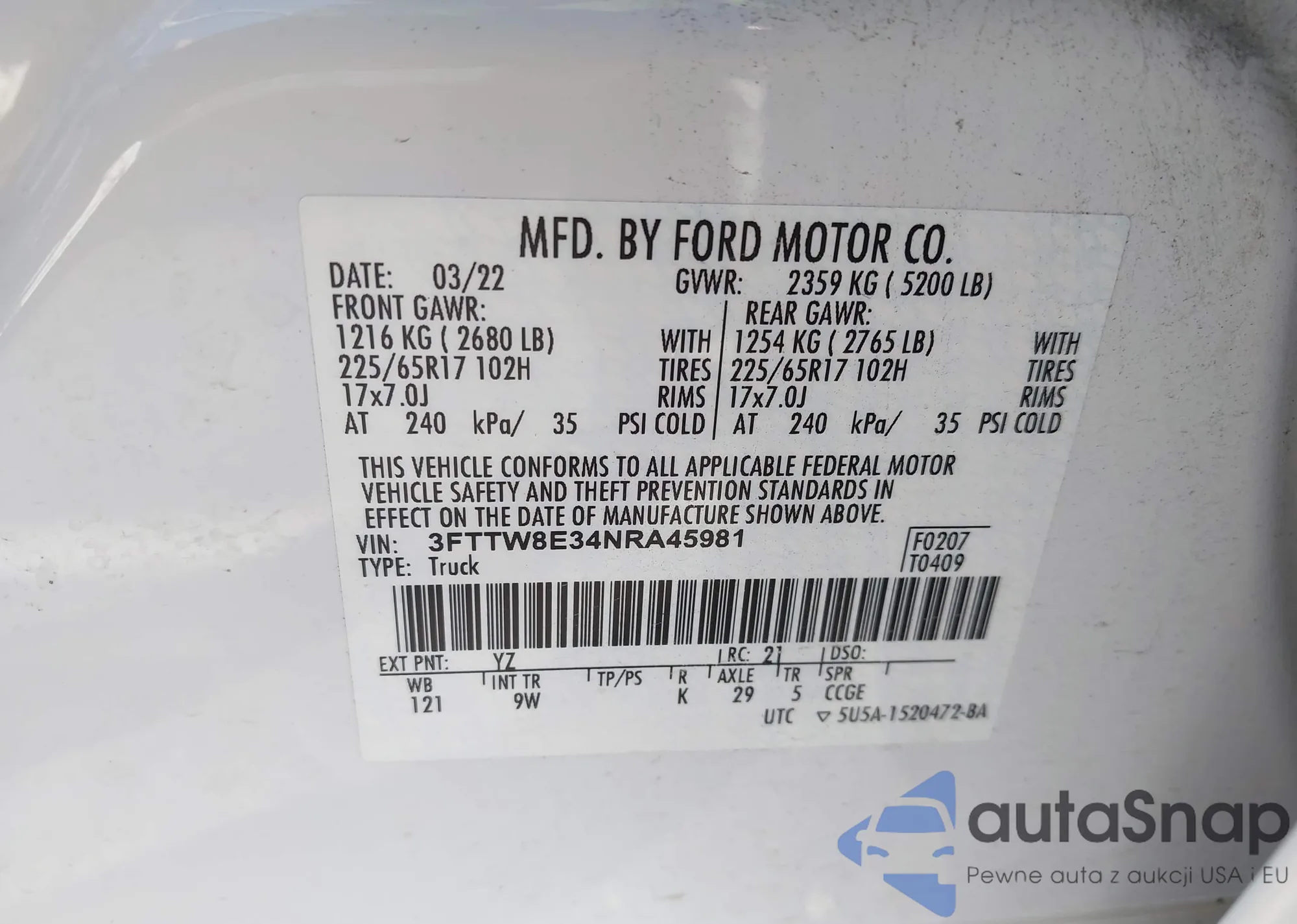 LOT: 43536224 VIN: 1FMDK05W98GA43629