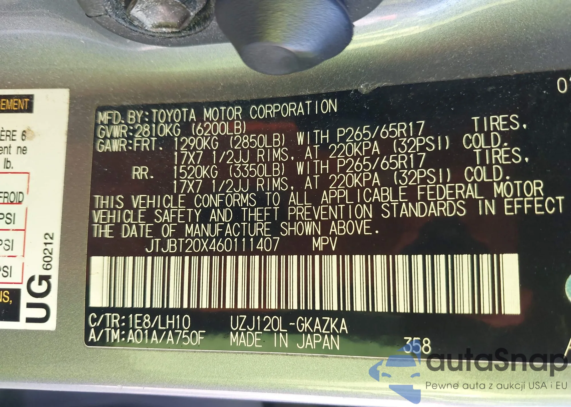 LOT: 43461815 VIN: JTJBT20X460111407