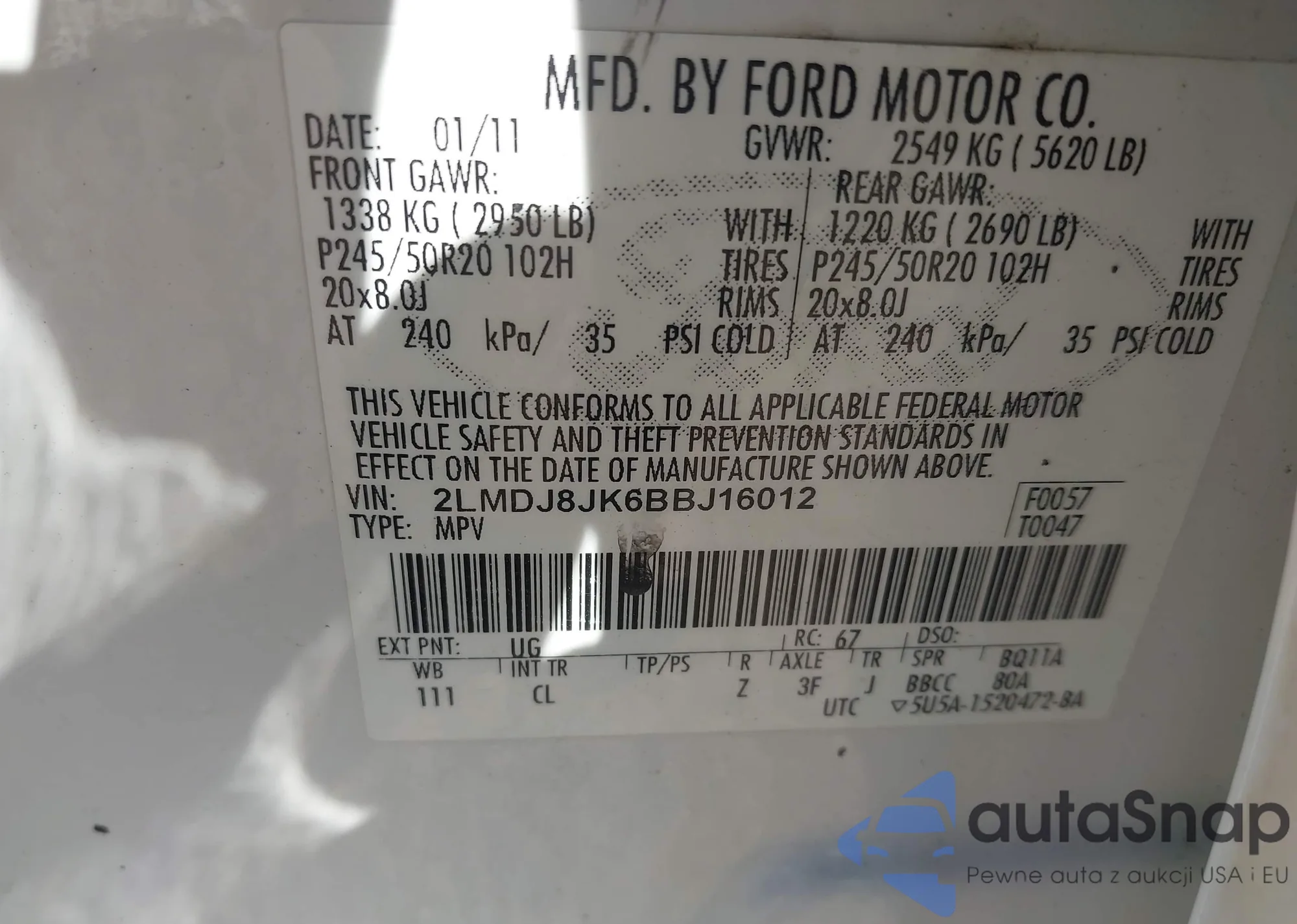 • VIN 2LMDJ8JK6BBJ16012