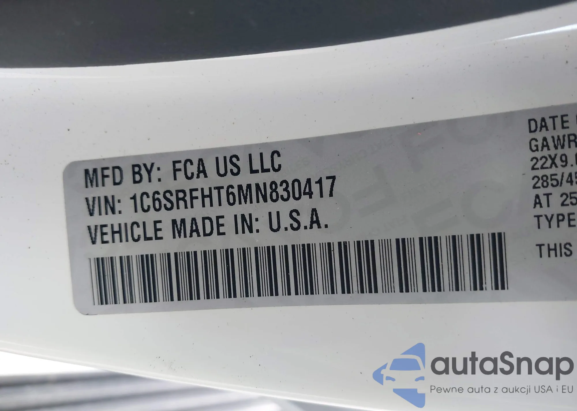 • VIN 1C6SRFHT6MN830417