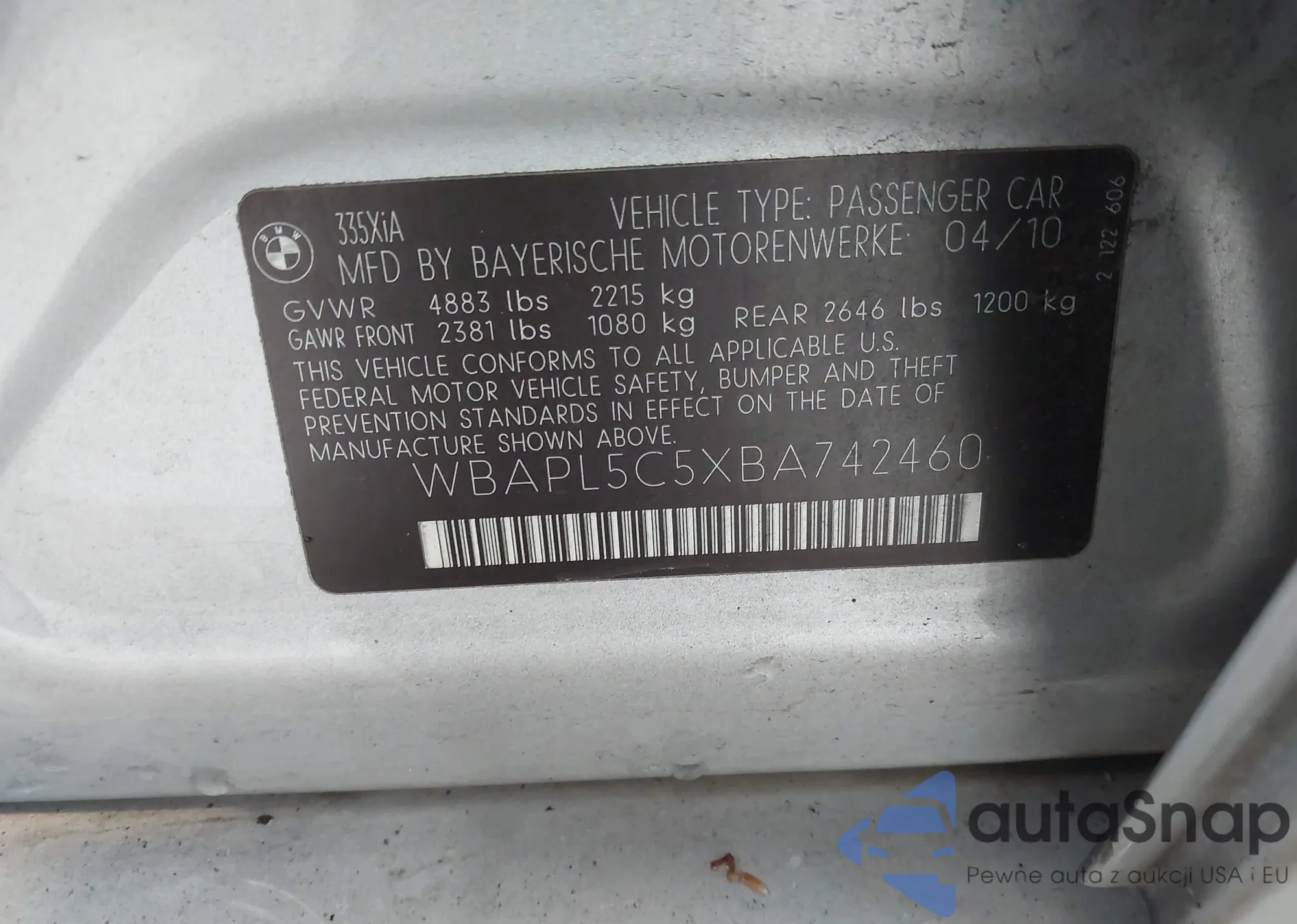 • VIN WBAPL5C5XBA742460