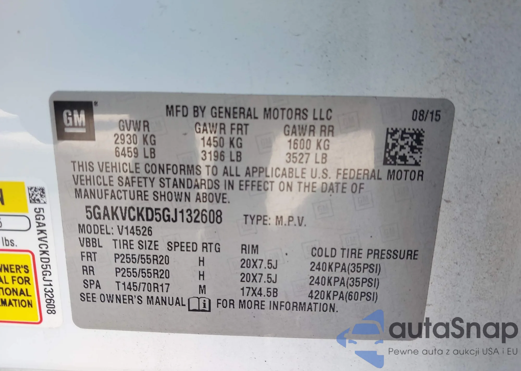• VIN 5GAKVCKD5GJ132608