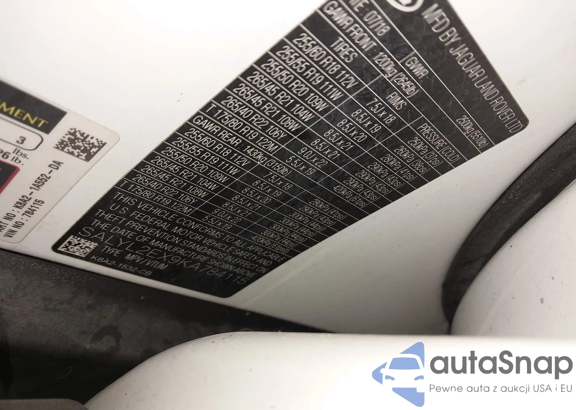 • VIN SALYL2EX9KA784115