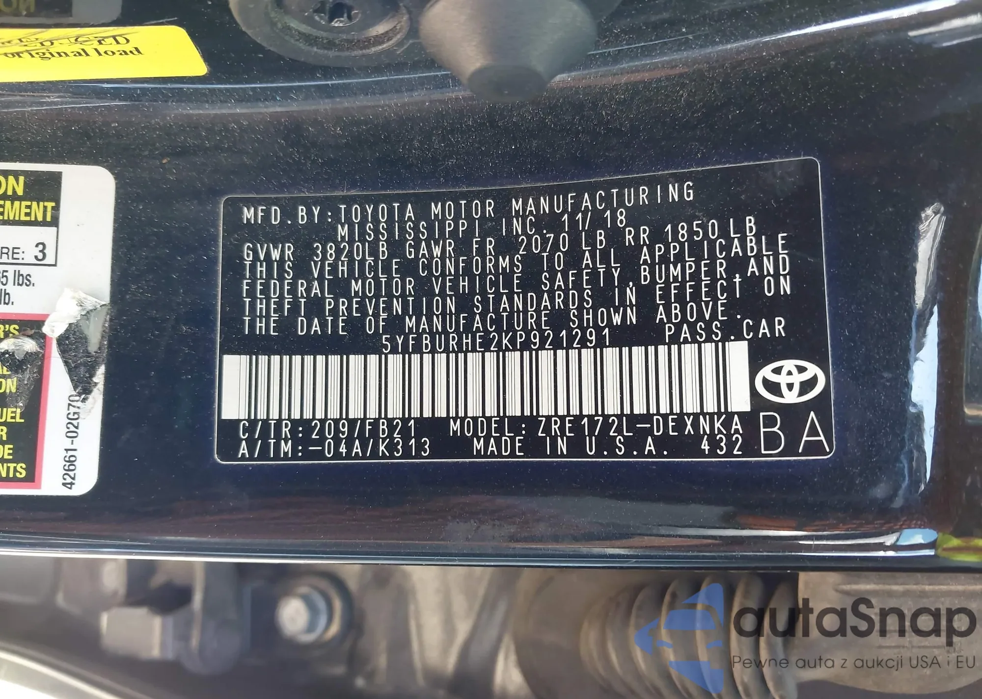 • VIN 5YFBURHE2KP921291