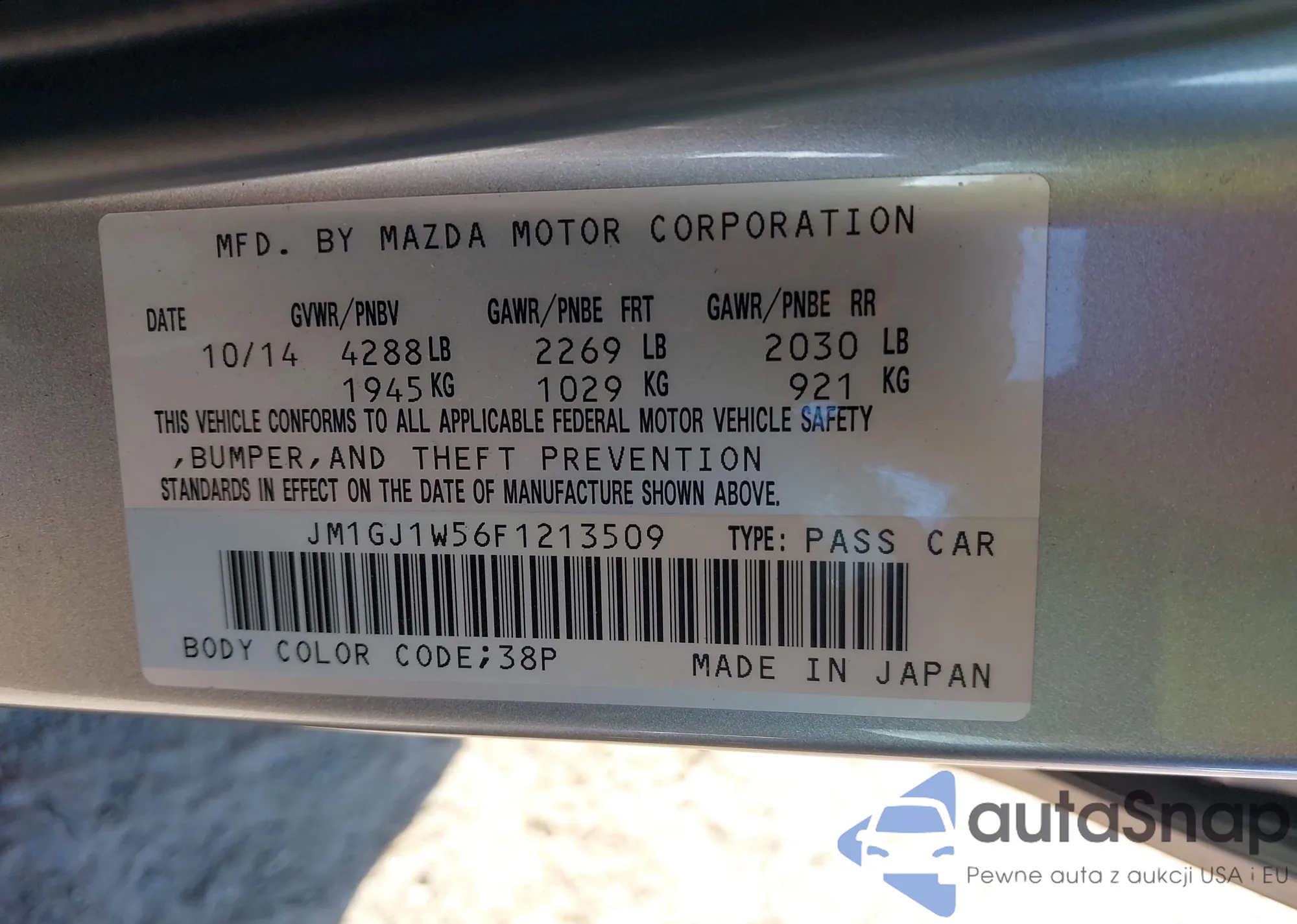 LOT: 43609197 VIN: JM1GJ1W56F1213509