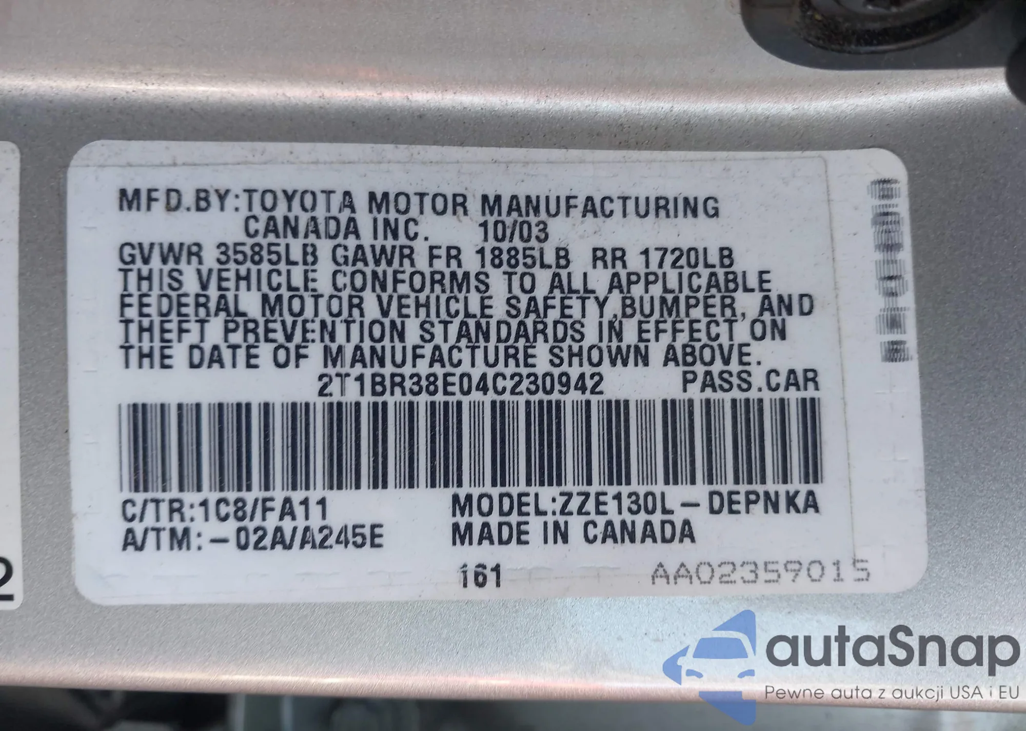 • VIN 2T1BR38E04C230942
