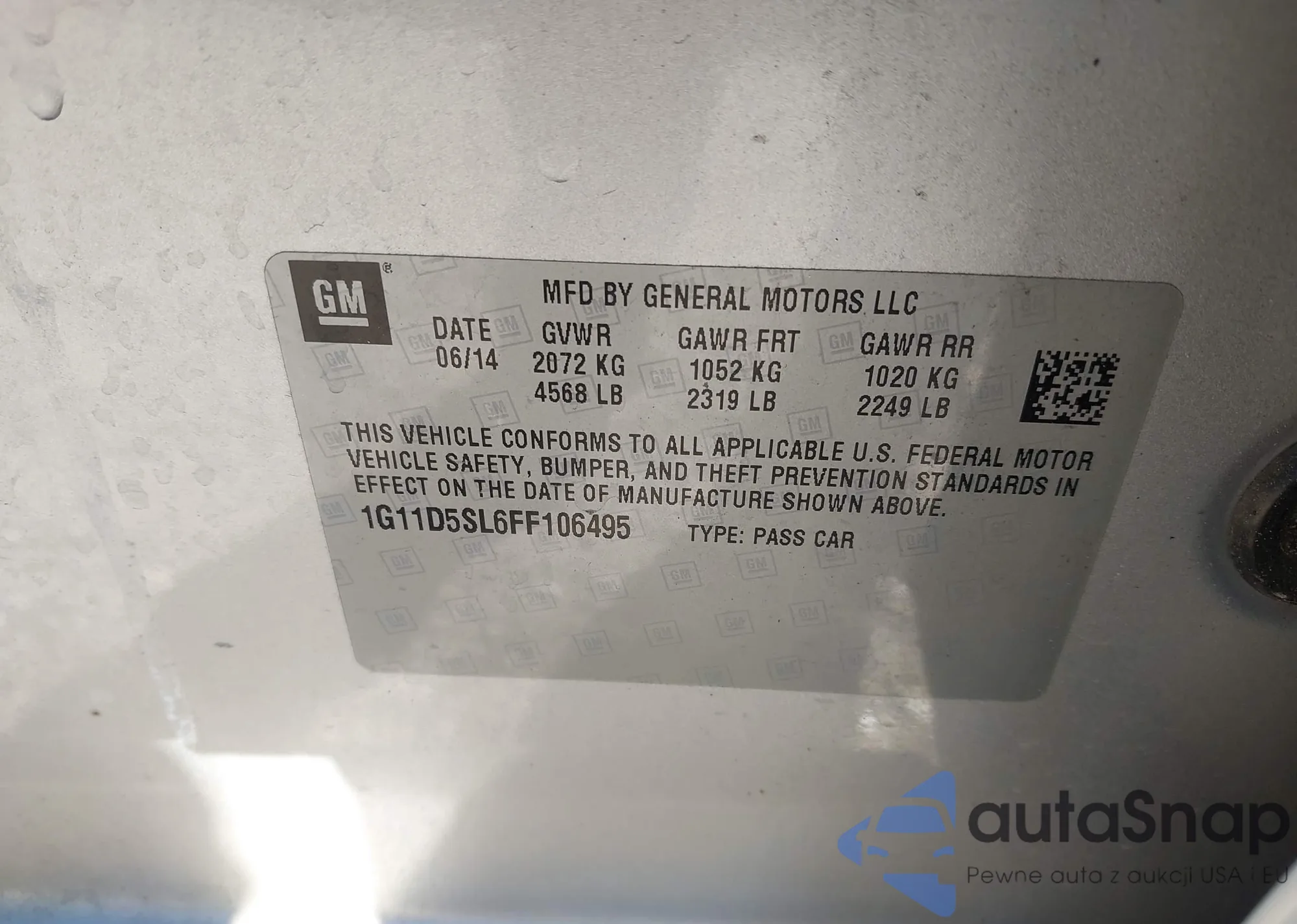 • VIN 1G11D5SL6FF106495