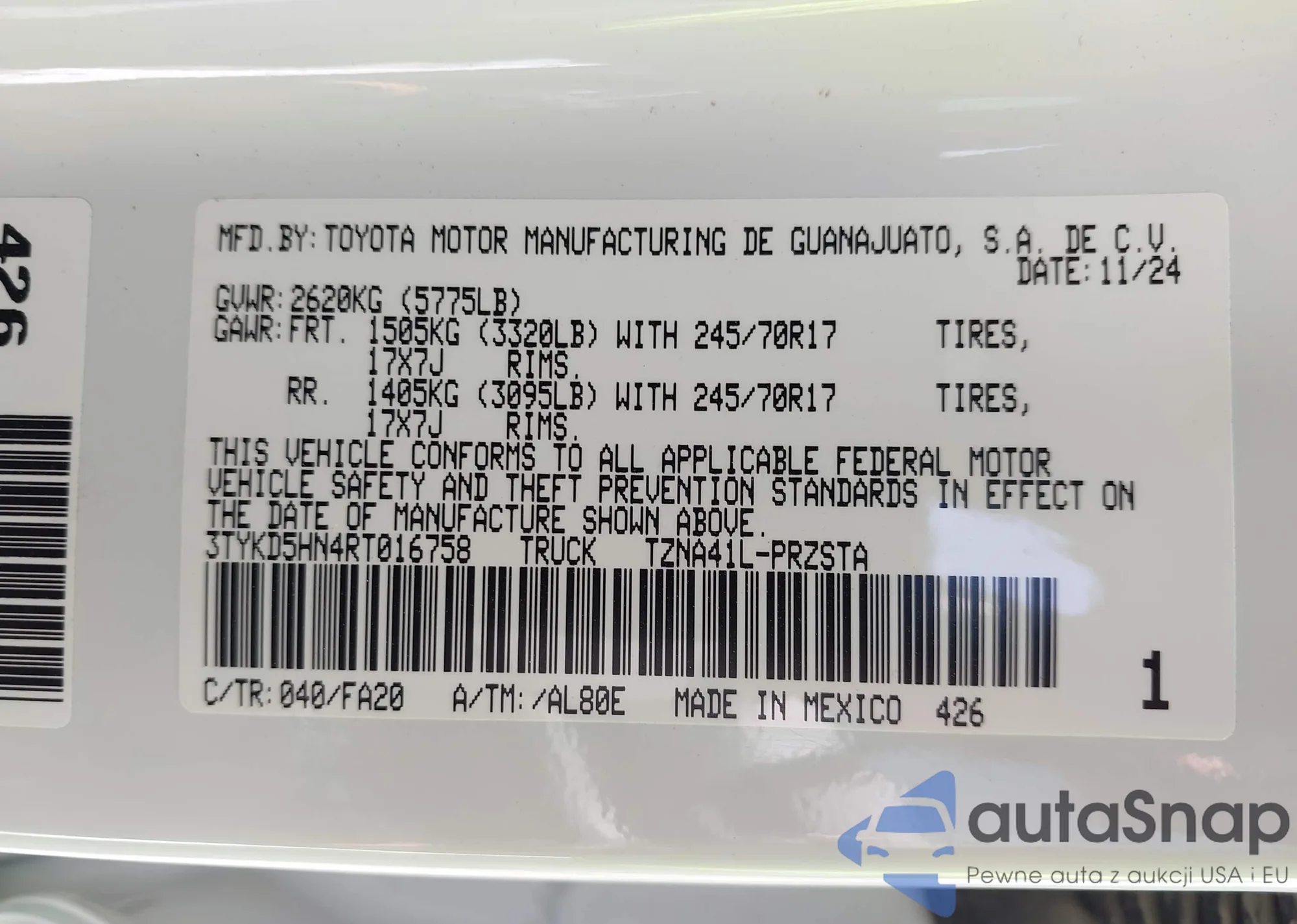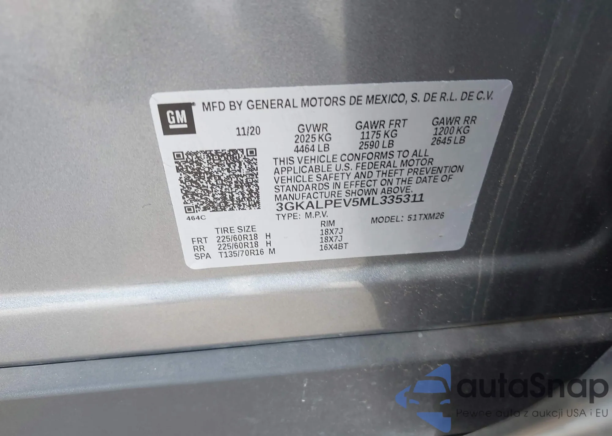 • VIN 3GKALPEV5ML335311