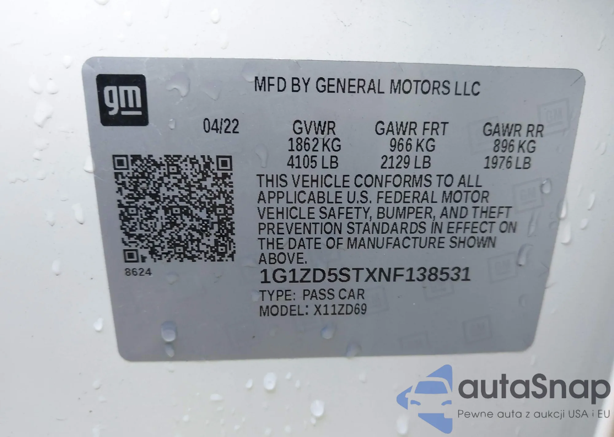 LOT: 43362749 VIN: 1G1ZD5STXNF138531