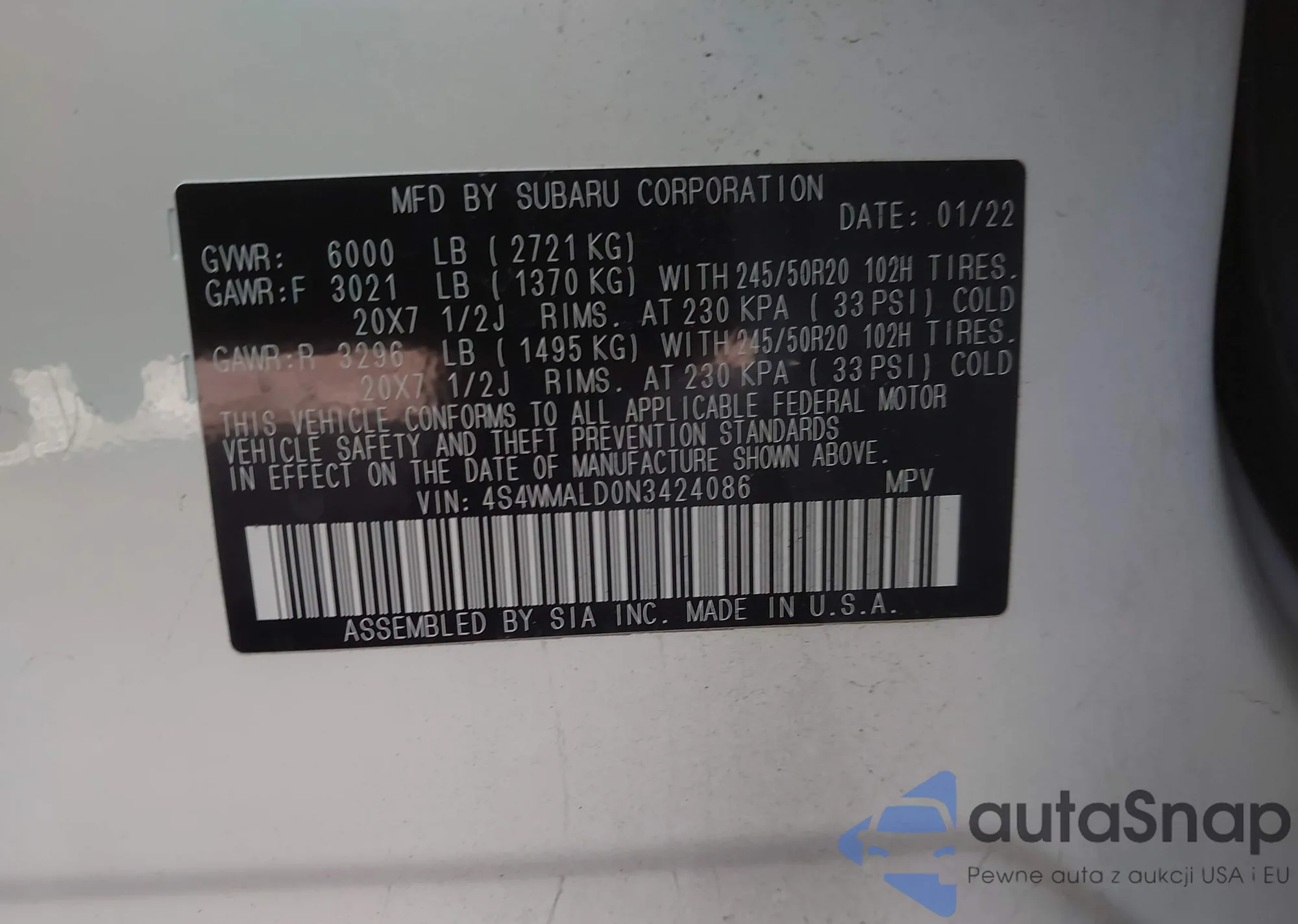 • VIN 4S4WMALD0N3424086