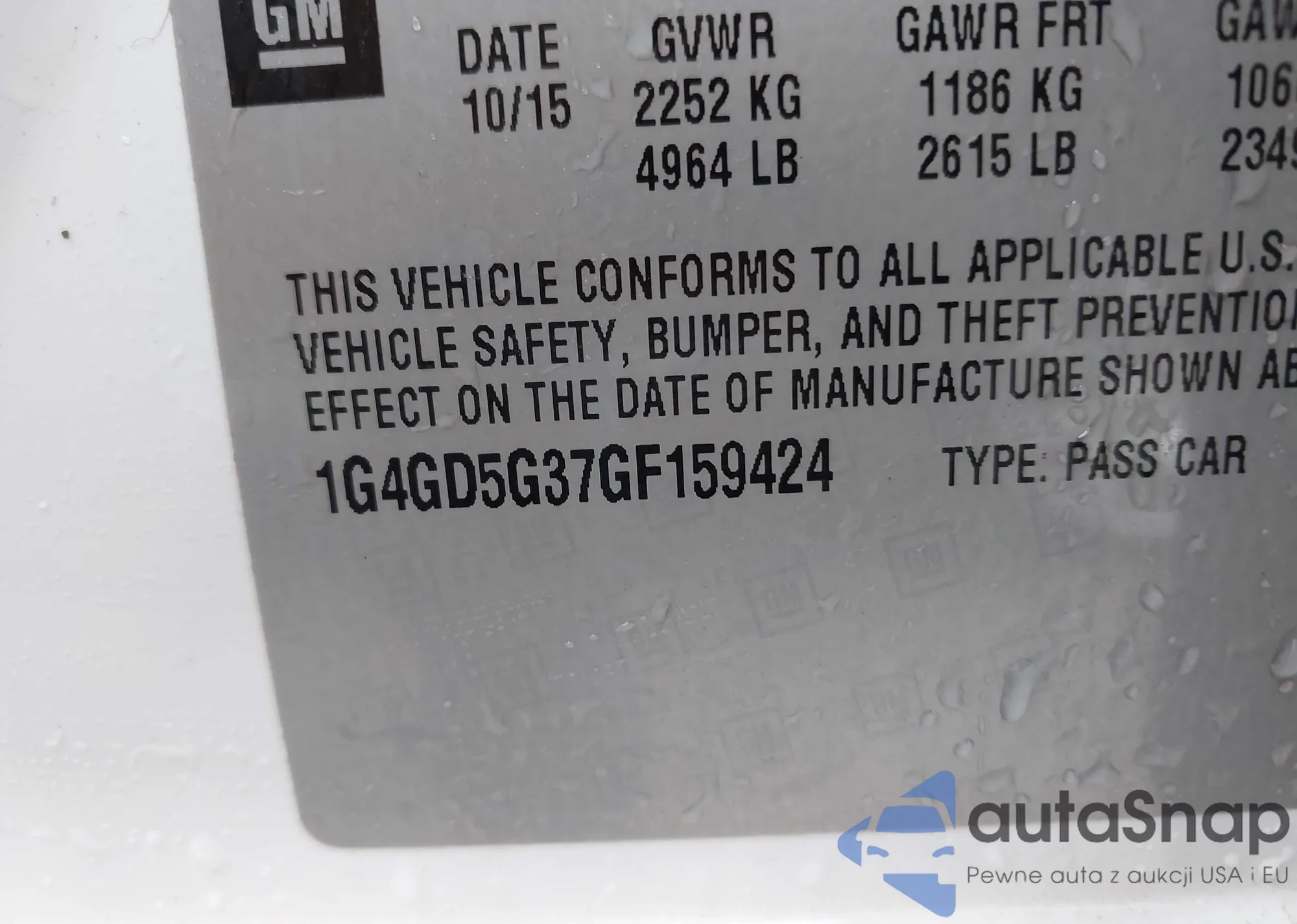 • VIN 1G4GD5E34CF257162