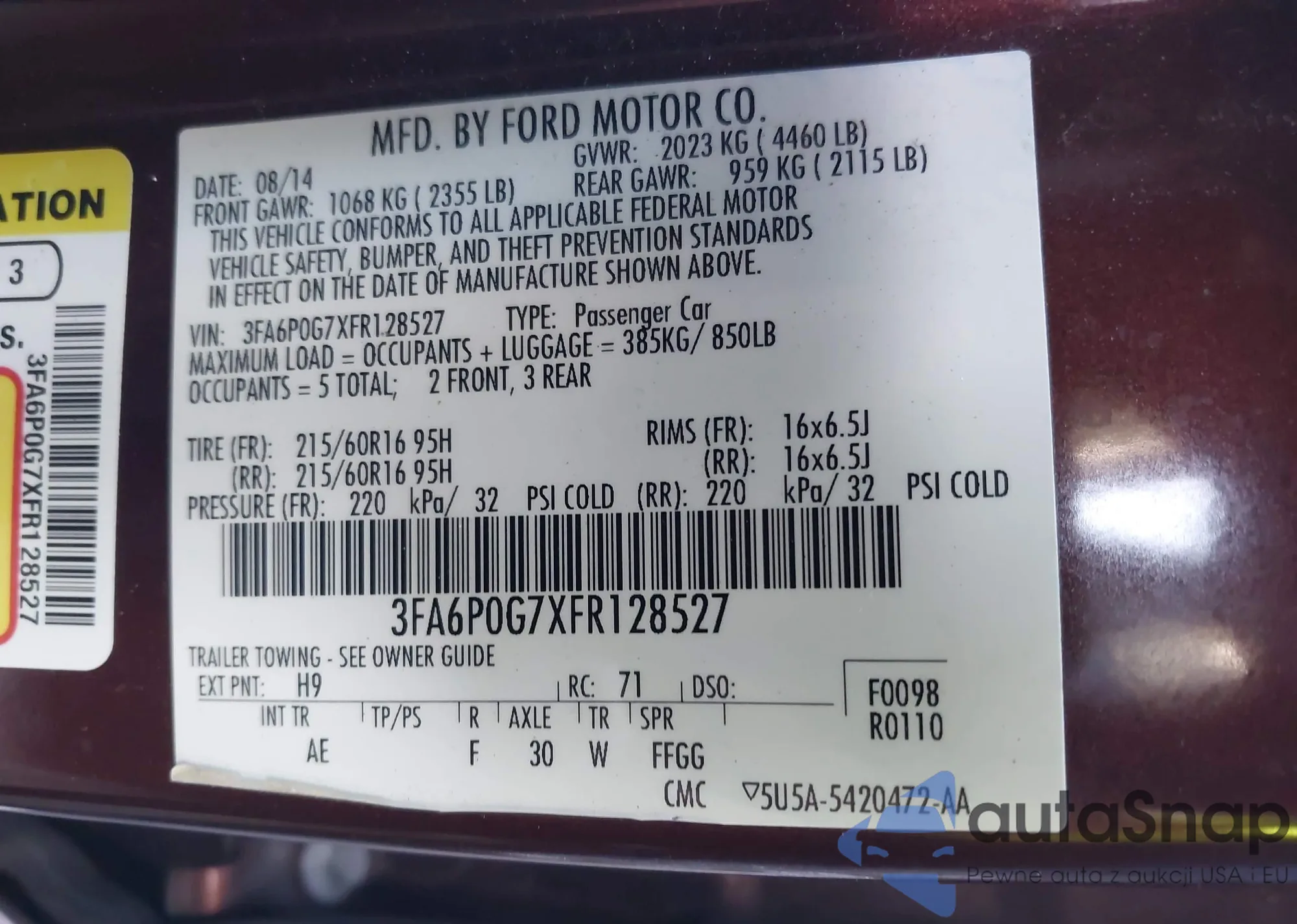 • VIN 3FA6P0G7XFR128527