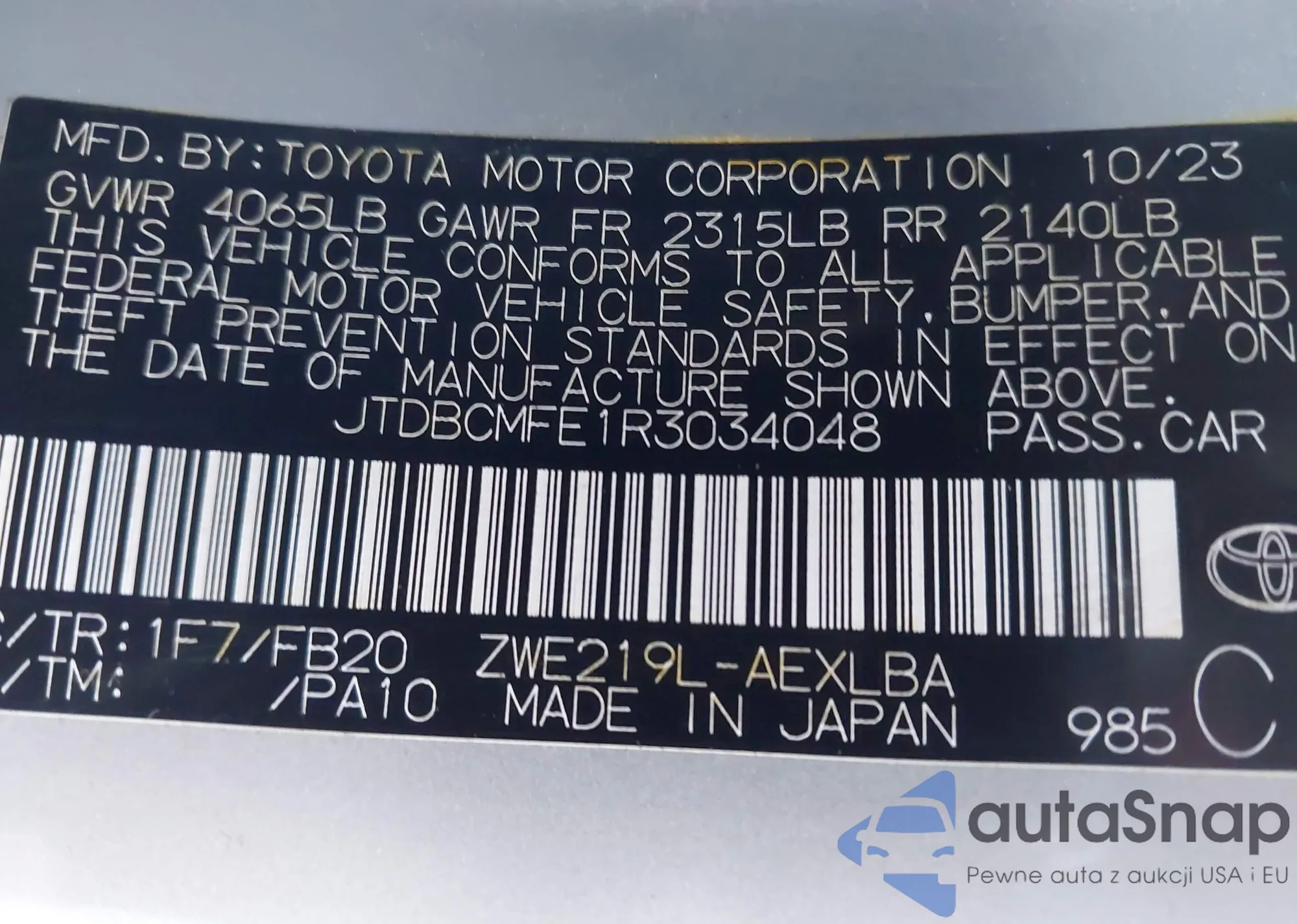 LOT: 43517569 VIN: JTNABAAE0RA008651